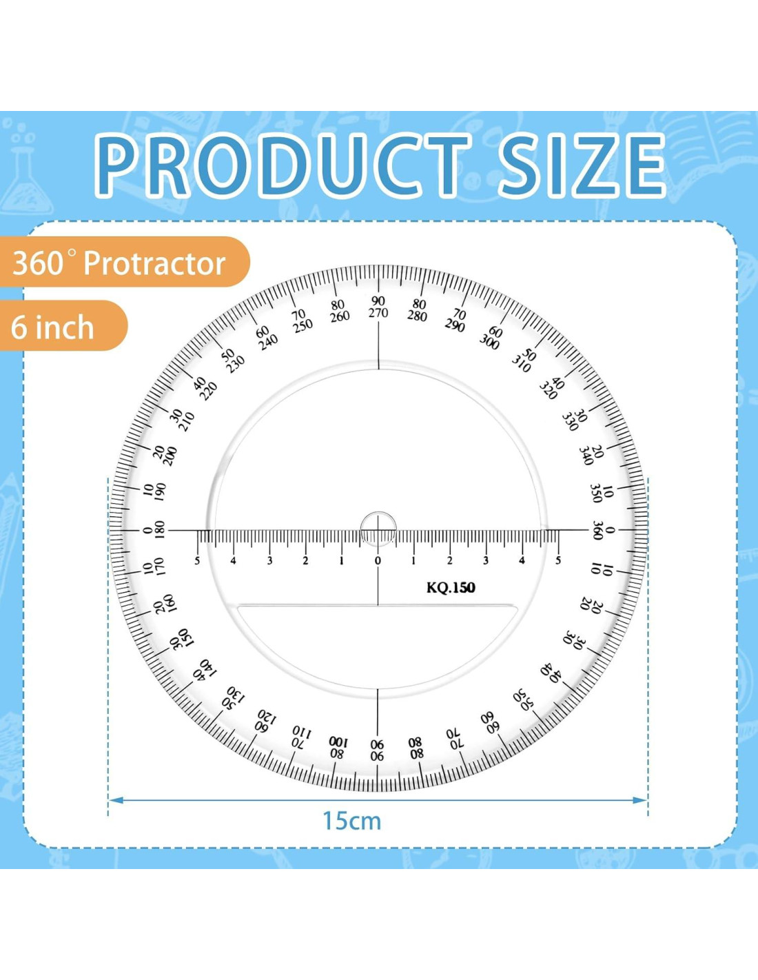 - Juego de 2 piezas: recibirás 2 transportadores de plástico, midiendo 15.24 cm de tamaño, con escalas finas y claras, un rango de medición de ángulos de 0 - 360, y medición de longitud precisa, satisfaciendo todo tipo de necesidades de dibujo y medición precisas.