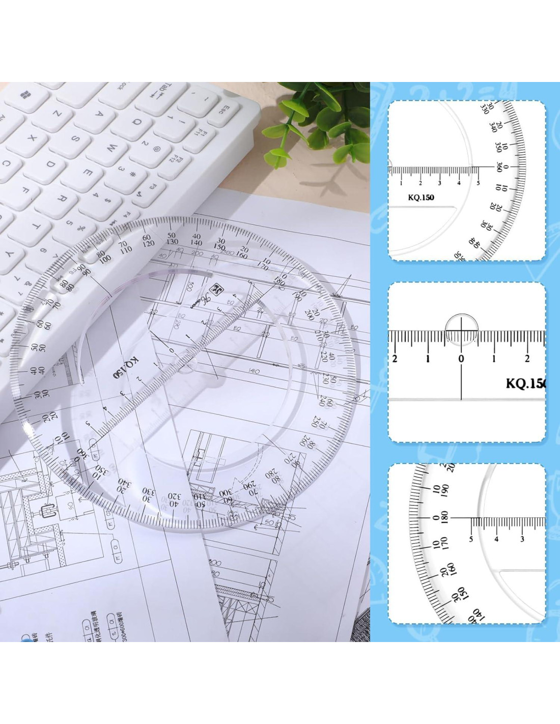 - Gran practicidad: estos transportadores transparentes se pueden usar para tareas, pintura, dibujo técnico, etc. Estudiantes, maestros, artistas o ingenieros los necesitarán; Ya sea en casa, en el trabajo o en la escuela, puedes preparar un juego.