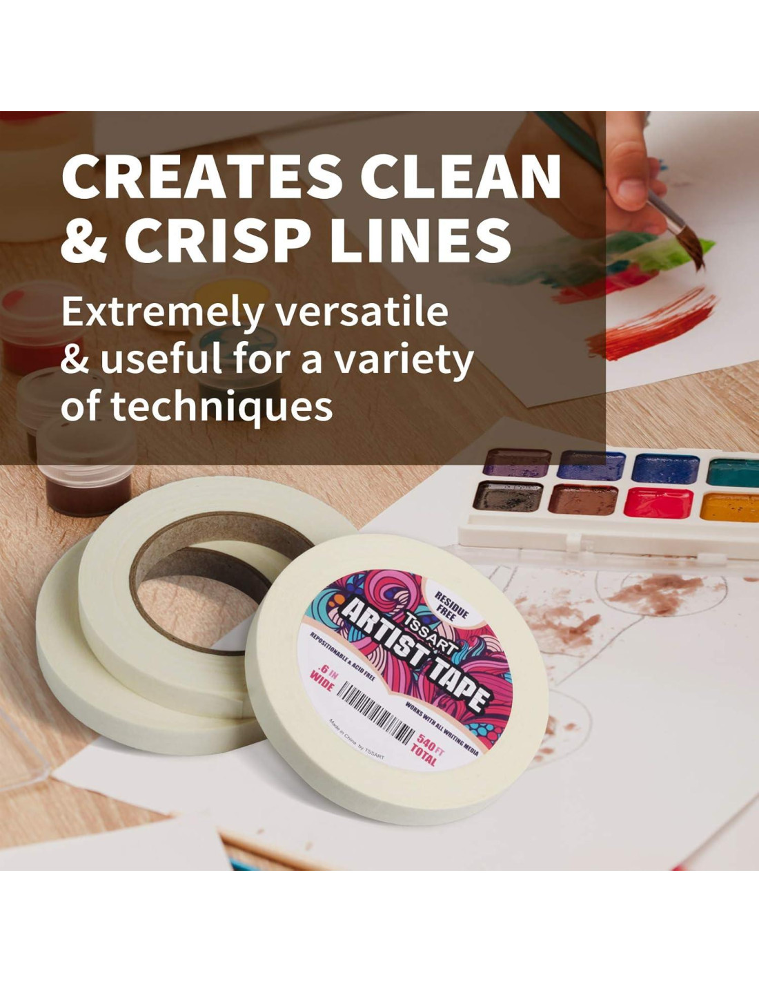 - USO AMPLIO: Ideal para bloquear áreas o mantener el papel en su lugar. Es ideal como cinta de dibujo, cinta de pintura para lienzo, cinta de enmascarar para papel de acuarela, cinta para lienzo y más. También se puede usar como cinta de enmarcador y cinta de dibujo.