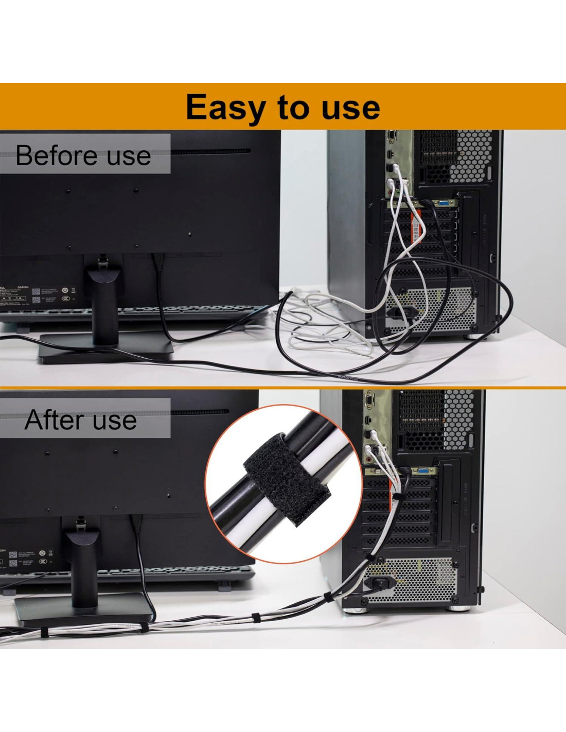 - Material de producción: Nuestras cintas para cables están hechas de nylon de alta tenacidad, a través de un diseño ingenioso, un lado es material de gancho adhesivo fuerte, el otro lado es material de terciopelo, positivo y negativo, ajustado y firme, cada rollo tiene 1/2 pulgada de ancho y 25 yardas de largo