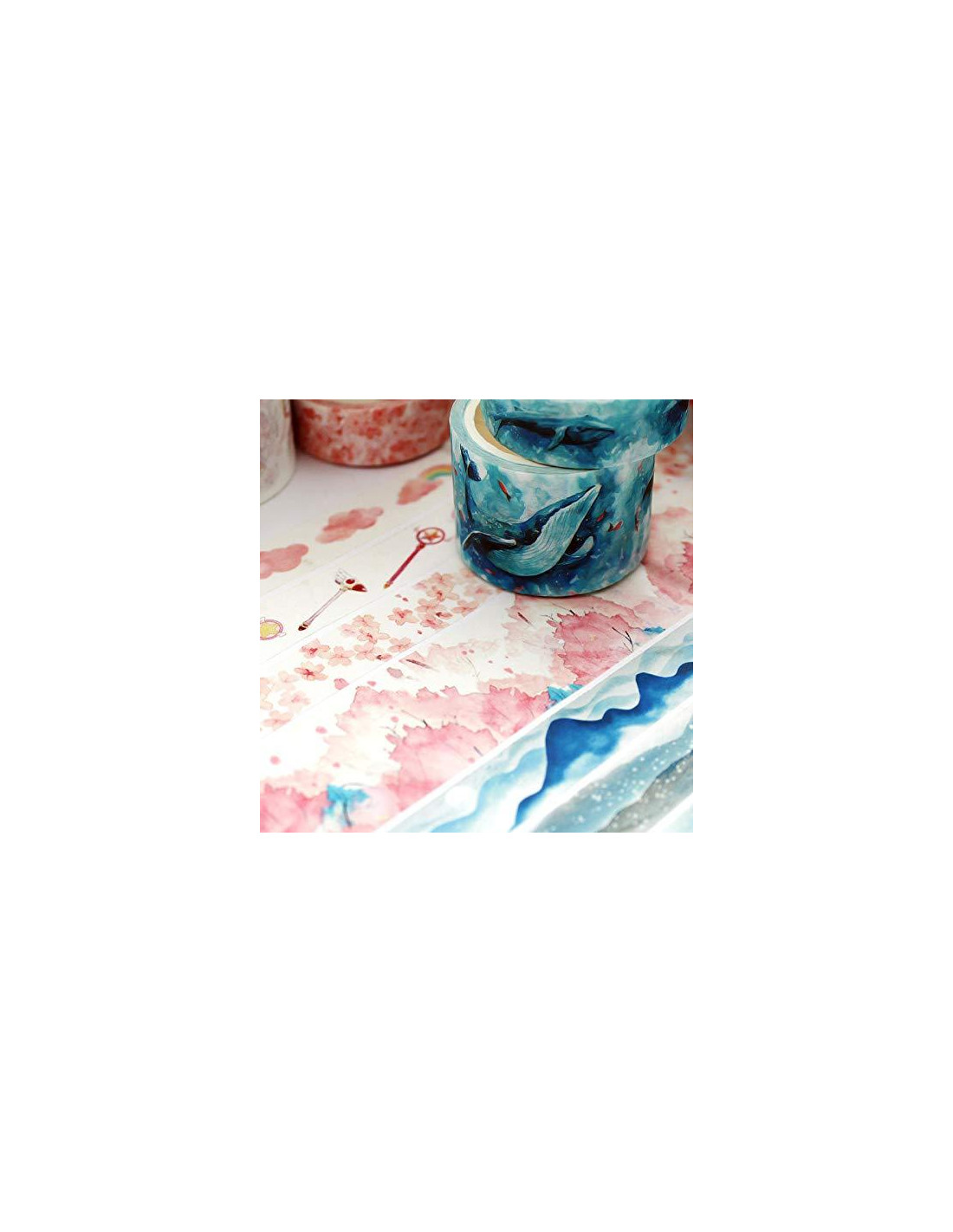 Gran diseño, excelente dorado y plateado, combinación creativa de productos, ¡definitivamente te gustarán las cintas decorativas que traemos! Este es un equipo que está loco por diseñar estas excelentes cintas de enmascarar. Siempre estamos actualizando y mejorando nuestra filosofía de diseño. Controlamos estrictamente cada detalle del proceso de fabricación y nos esforzamos por perfeccionar cada producto que llega a nuestros clientes. Tono rosa, patrones de sakura. 2 rollos de 9/16" (15mm), 1 rollo de 1/8" (30mm) de ancho. Patrones de peces y nubes en azul y blanco. 2 rollos de 9/16" (15mm), 1 rollo de 1/8" (30mm) de ancho. Patrones de encaje impresos en azul, rojo y verde. 3 rollos de 9/16" (15mm) de ancho. Patrones de montañas en azul oscuro. 3 rollos de 9/16" (15mm) de ancho. Usando papel washi japonés como material base, la superficie tiene una textura suave especial, se siente natural y se puede rasgar a mano. ¡Es un muy buen producto de decoración superficial! Estas cintas de enmascarar tienen una adhesión ideal. Puedes reposicionar estas cintas decorativas tradicionales sin dañar la superficie y sin dejar pegamento. Ideal para decoraciones en superficies como planificadores, diarios, cajas de lápices, paredes, muebles, etc., o envoltura de regalos, proyectos DIY, obras de arte, incluso se puede combinar con el aceite de uñas transparente para clavar. También se puede usar como una nota adhesiva, pulsera desechable, accesorios de juego y otros usos, ¡todos son muy geniales! Este paquete de 3 rollos, 16' (5m) de longitud para cada rollo. Versión ancha (Flores de Cerezo, Pez Mítico): 2 rollos de 9/16" (15mm), 1 rollo de 1/8" (30mm) de ancho. Versión normal (Cuadros de Encaje, Paisaje Montañoso): 9/16" (15mm) de ancho.