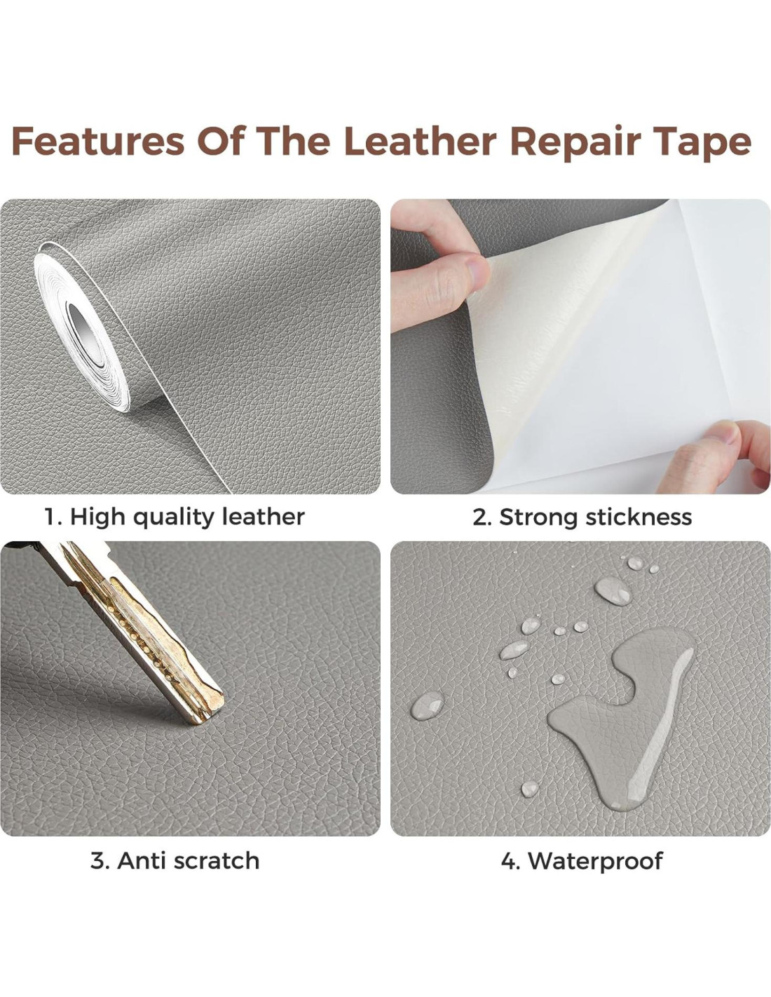 - Excelente Kit de Reparación de Cuero Esta cinta de reparación de cuero está hecha de material de alta calidad, con patrones y colores clásicos. El cuero es suave y blando al tacto, impermeable, resistente al desgaste y antiarañazos. Resistente y duradero. Funciona maravillosamente para reparar daños en el cuero y proyectos de decoración.