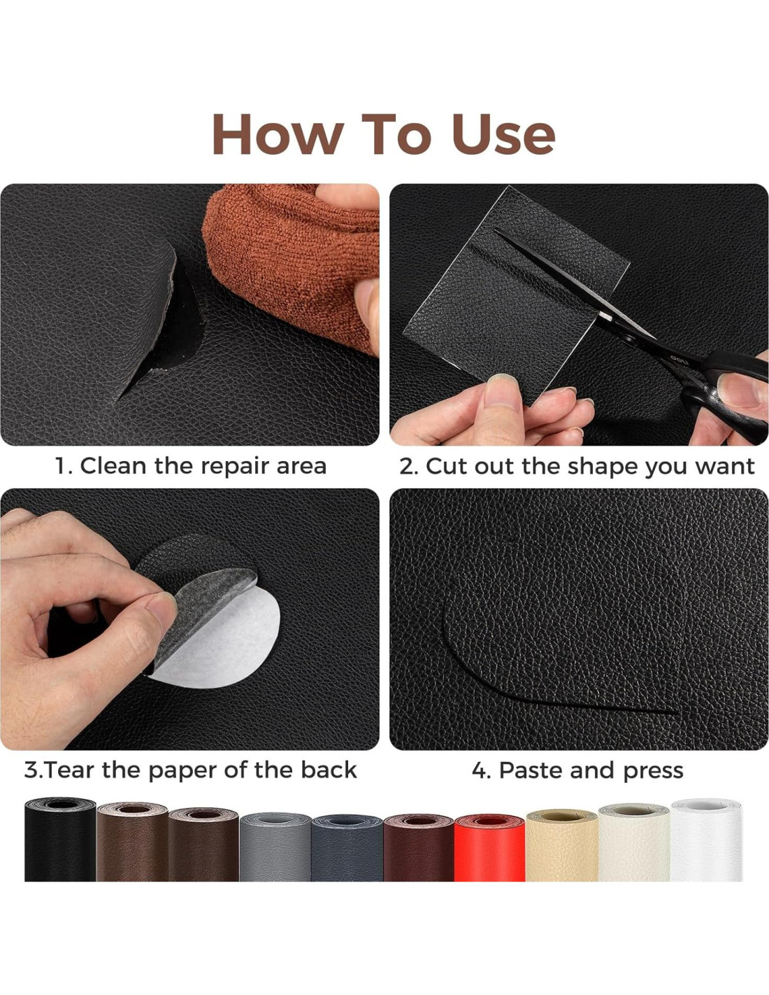 - Super Adhesivo y Reparación Profesional El parche de reparación autoadhesivo está equipado con un adhesivo profesional en la parte posterior, que es autoadhesivo y no se despegará fácilmente, lo que asegura que la cinta de reparación de cuero pueda funcionar durante mucho tiempo. El kit de reparación de cuero sintético puede cubrir rápidamente desgarros, agujeros, rasgaduras, quemaduras, arañazos, manchas y otras imperfecciones en cuero dañado, cuero sintético y artículos de vinilo. Ahorra dinero y revive el mobiliario de cuero como nuevo.