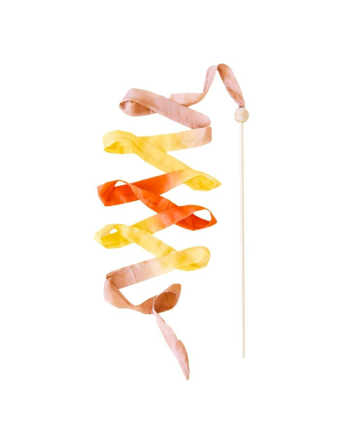 - Las Cintas de Arcoíris Boho están hechas con seda real 100% natural y madera de abeto. Estos materiales dan una sensación única y ligera al dibujar en el aire o girar en el viento.