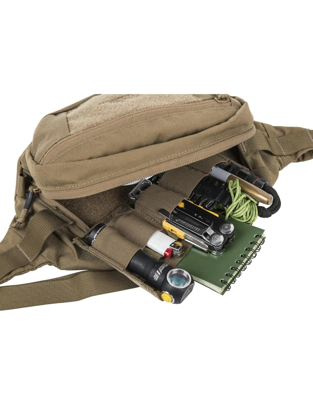 El Bandicoot, un cinturón de tamaño mediano, ofrece una serie de características únicas en un paquete suave y de bajo perfil. Contendrá todos los elementos esenciales para el día a día, como billetera, teléfono inteligente, botiquín, bocadillos, guantes, etc. La cámara principal espaciosa, además de un bolsillo de malla con cremallera, tiene un organizador desmontable con tres bolsillos planos y cinco bandas elásticas - conocido de nuestra Línea Médica, que también sirve en aplicaciones más civiles. Paneles desmontables similares son conocidos del Urban Admin Pouch y productos compatibles con el Versatile Insert System. Dos bolsillos exteriores con cremallera (uno de ellos un bolsillo oculto, colocado en el lado interno del paquete) permiten distribuir la carga de manera uniforme. La cremallera de dos vías permite un fácil acceso a la cámara principal desde cualquier lado. El cinturón de cadera ajustable se puede usar como bandolera en el pecho, si el usuario elige ocultarlo bajo una chaqueta. El cinturón de cadera también se puede desmontar por completo, si es necesario. Varias bandas elásticas permiten que el paquete se integre rápidamente en cualquier sistema MOLLE/PALS. El panel de identificación de Velcro colocado sobre el bolsillo exterior se puede usar para una fácil personalización. El usuario puede elegir la colocación de la hebilla, guardar la correa del cinturón del bolso, quitar o reemplazar el inserto de Velcro interno personalizándolo para diferentes aplicaciones. El diseño de cuatro bolsillos es lo suficientemente grande como para acomodar artículos personales junto con suministros médicos básicos o una chaqueta cortaviento. Las alas laterales del Bandicoot permiten la sujeción de bolsillos PALS/MOLLE u otros accesorios. Dimensiones 26 x 15 x 7 cm - 26 x 7 x 15 cm.