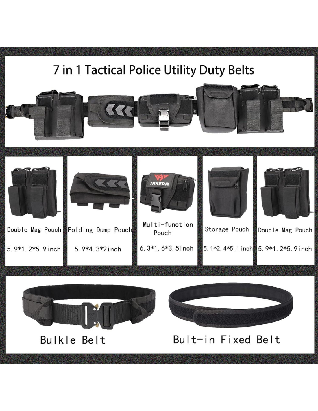 - [PAQUETE 7 EN 1] Cinturón de batalla MOLLE de liberación rápida 7 en 1, 2 cinturones + 5 partes de bolsillos, elige diferentes bolsillos según la preferencia personal, y cada parte se puede desmontar y usar sola.