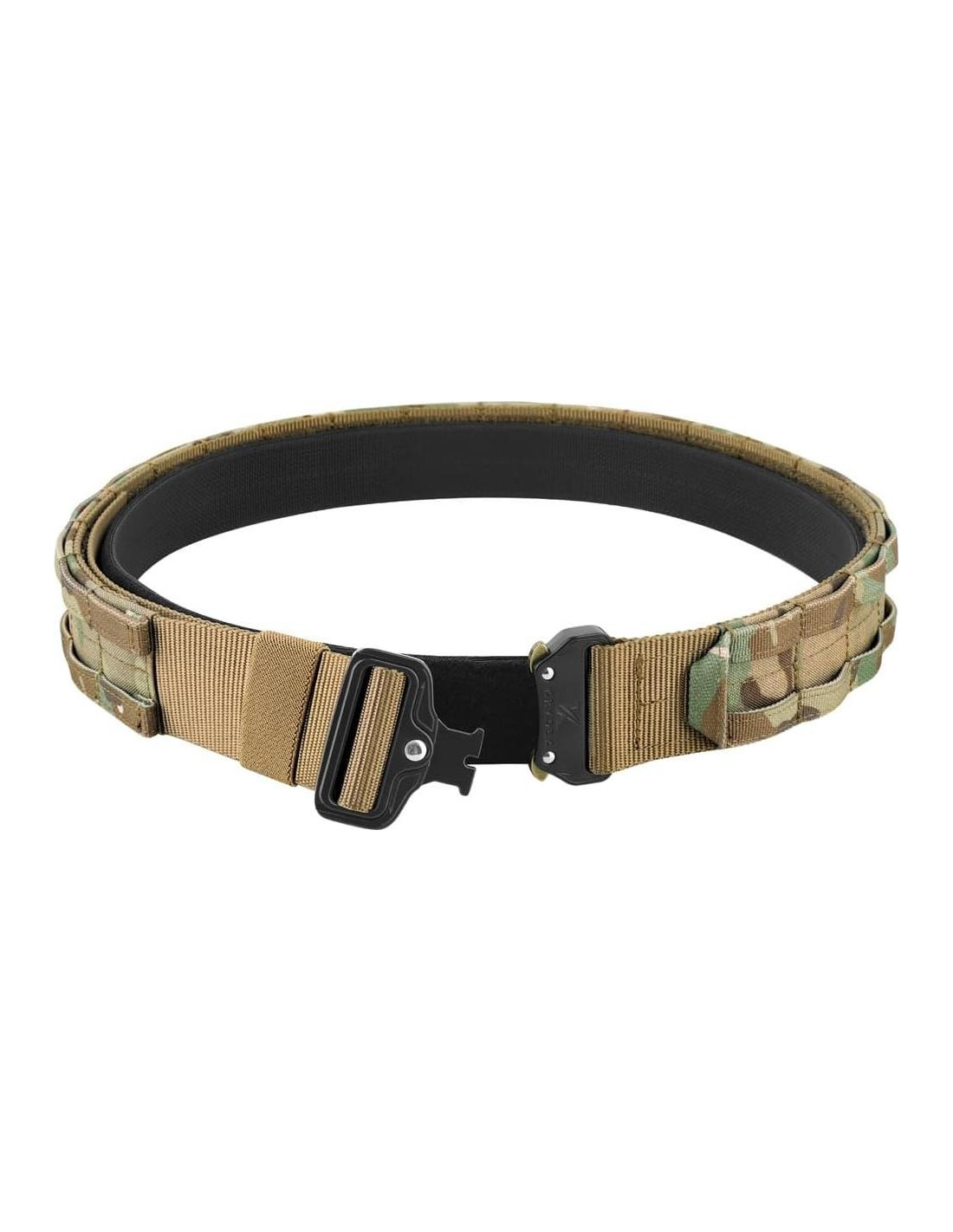 - Cinturón externo MOLLE de 1.75" (4,45 cm) doblemente reforzado que se adhiere al exterior del cinturón interno, la hebilla de liberación rápida y el respaldo de gancho permiten la máxima seguridad mientras permiten una rápida colocación y extracción. La cinta MOLLE rodea el cinturón externo para equipar bolsas, fundas y otros accesorios de cinturón.