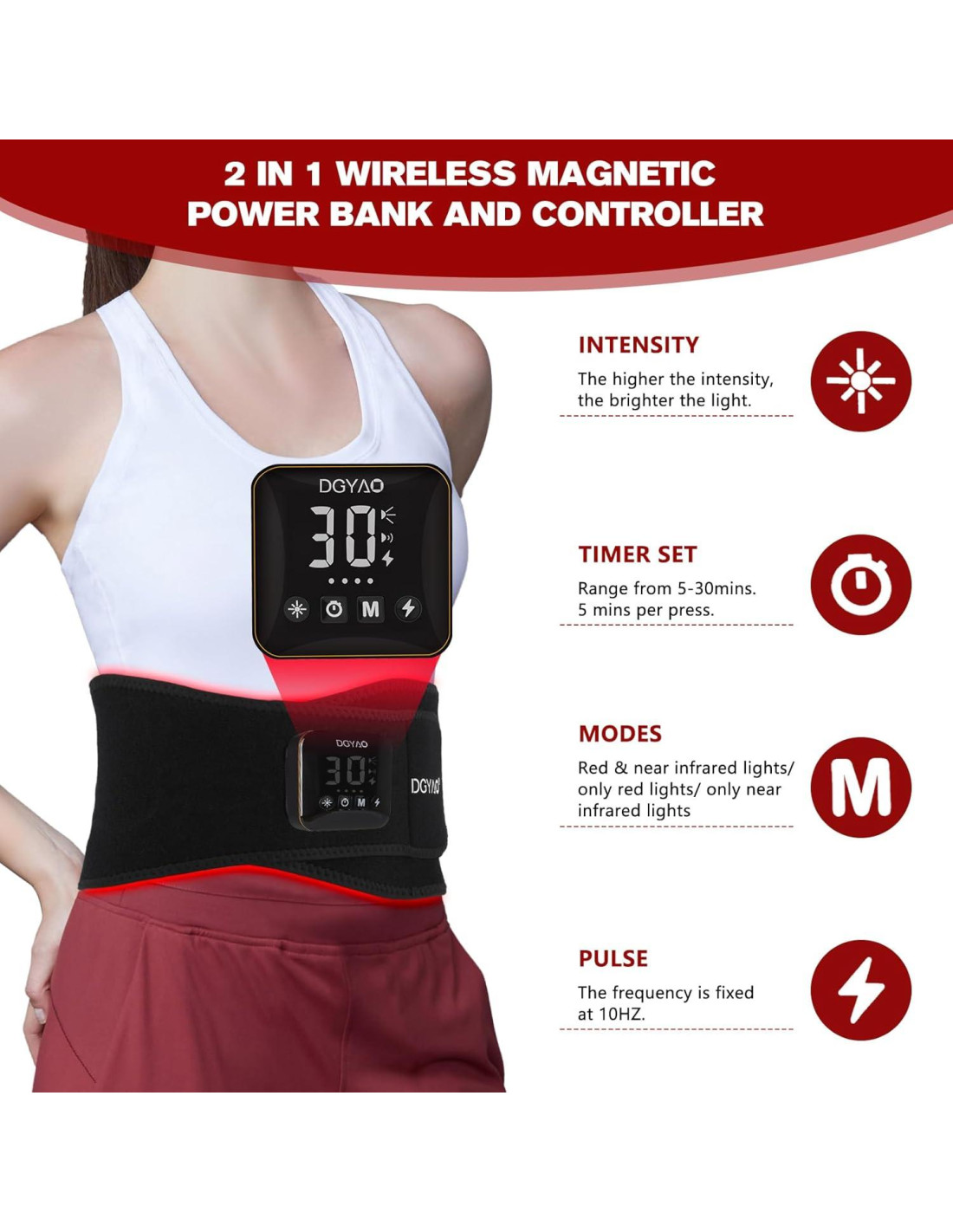 - 2 EN 1 Banco de energía magnético inalámbrico y controlador - Dispositivo de terapia de luz roja para la espalda con banco de energía magnético de 4000 mAH que también se utiliza como controlador, diseño portátil que facilita la terapia de luz sin las limitaciones de tiempo y espacio, es conveniente usarlo en el trabajo, haciendo tareas del hogar, leyendo, viajando, acampando.