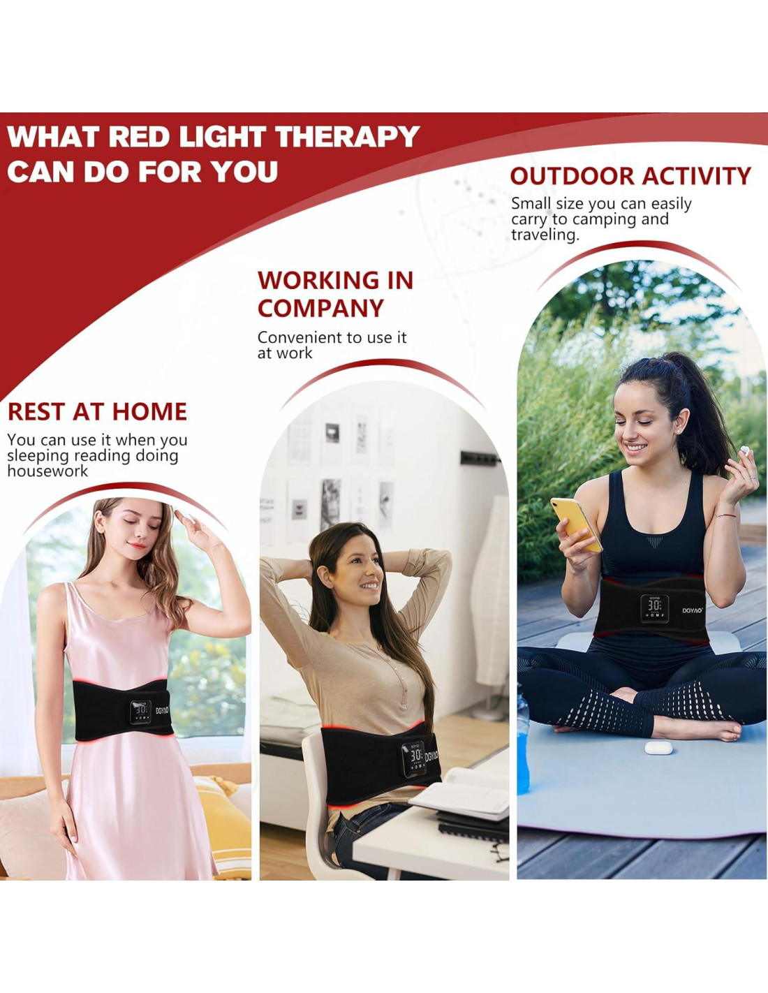 - Tratamiento cómodo para el cuerpo - Nueva almohadilla de terapia de luz roja para cinturón con suave terciopelo y bombilla plana SMD que se ajusta a la piel, brinda una experiencia de uso cómoda durante el tratamiento. Tamaño desplegado de la terapia de luz infrarroja: 130 cm x 19.3 cm, gran área para cubrir su cuerpo, incluyendo su espalda alta y baja, cuello, hombro, cadera, muslo, rodilla, brazo. con velcro ajustable, adecuado para diferentes tipos de cuerpo.