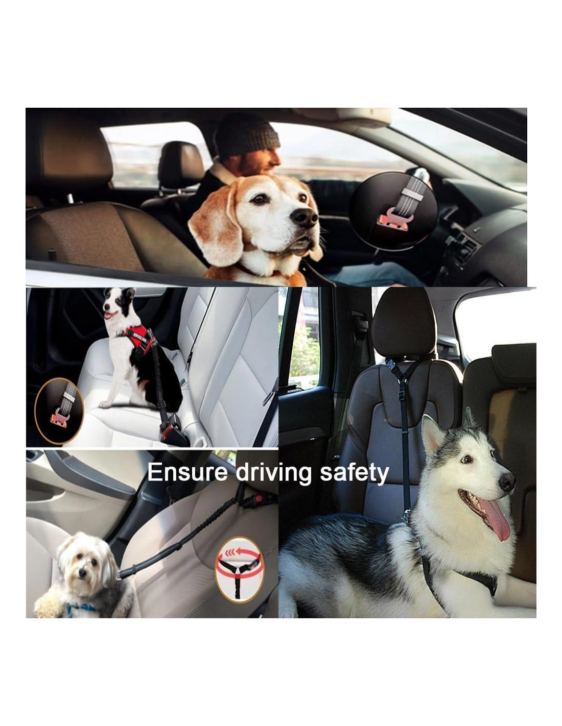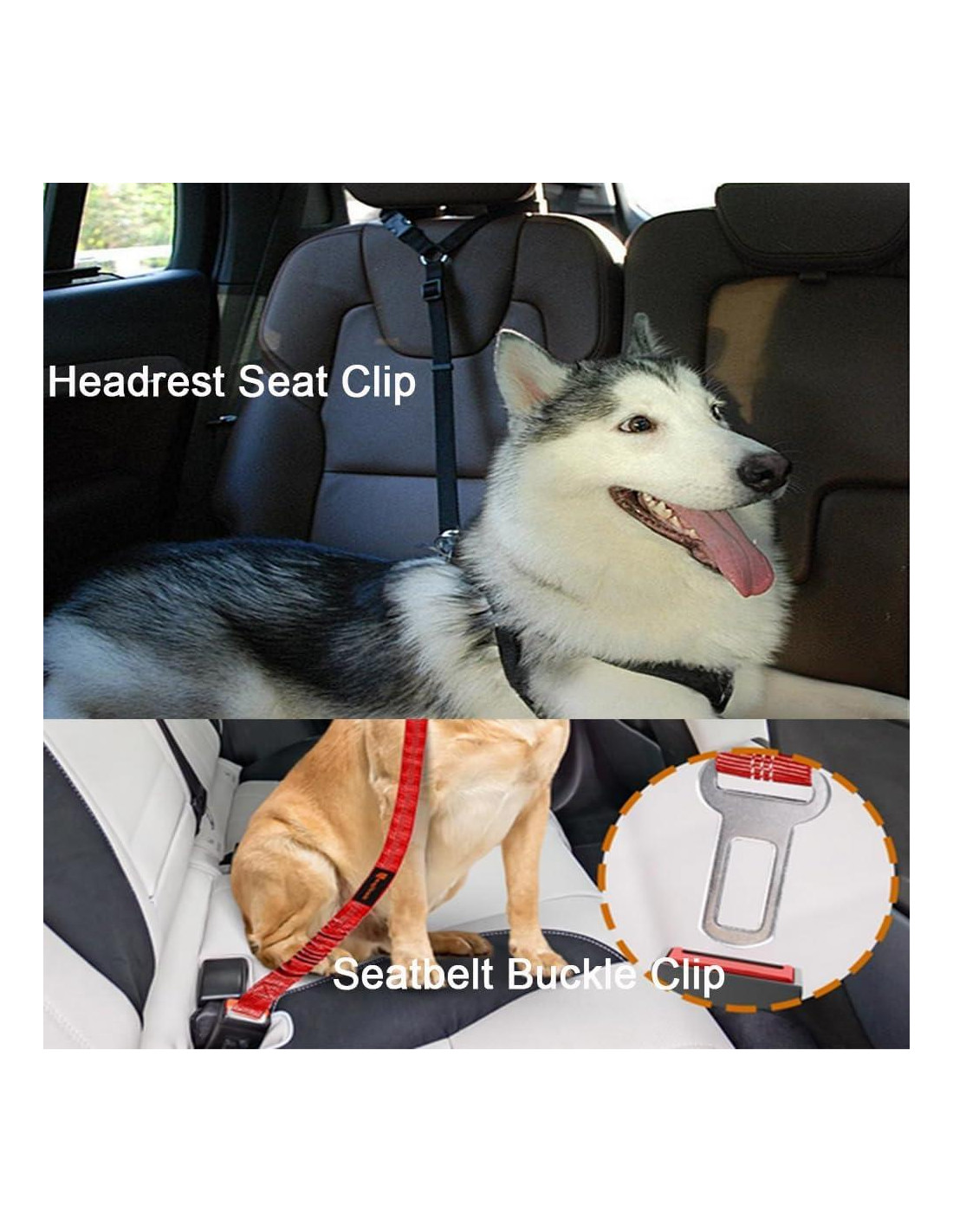- [Diseñado 3 en 1] Correa de cinturón de seguridad para perros, restricción retráctil se asegura al reposacabezas del vehículo, correa de cinturón de seguridad ajustable para perros.