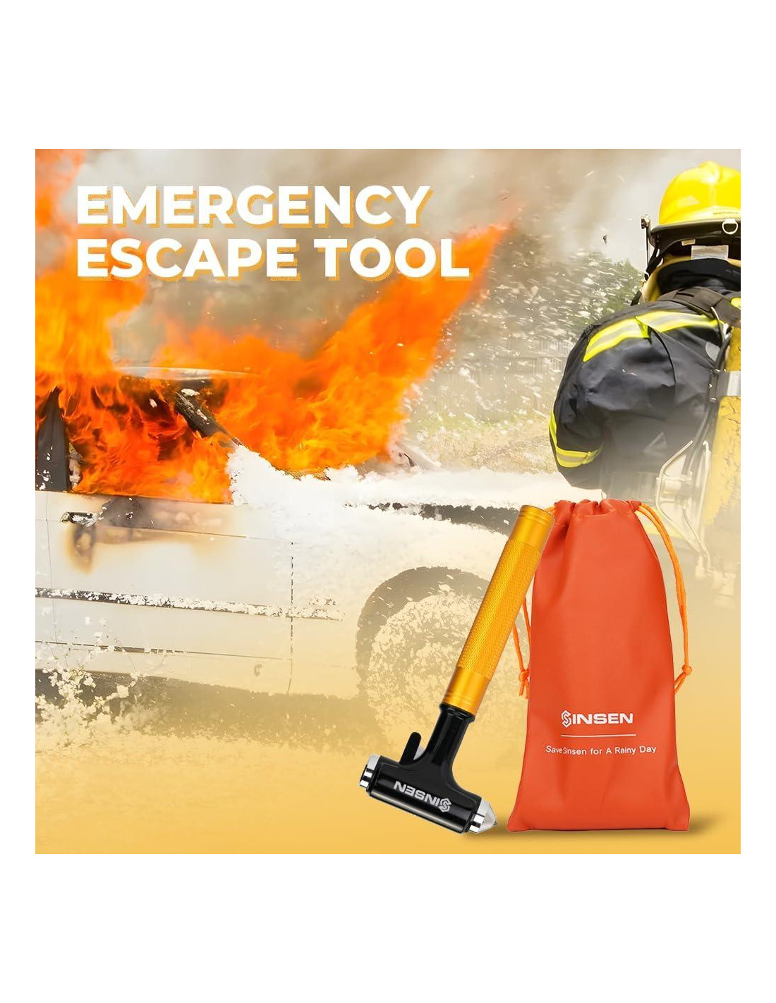 - Rompevidrios de calidad - Rompevidrios de tungsteno de alta resistencia que te permite escapar rápidamente de una emergencia, el pico de tungsteno puede incluso romper ventanas delanteras y traseras.