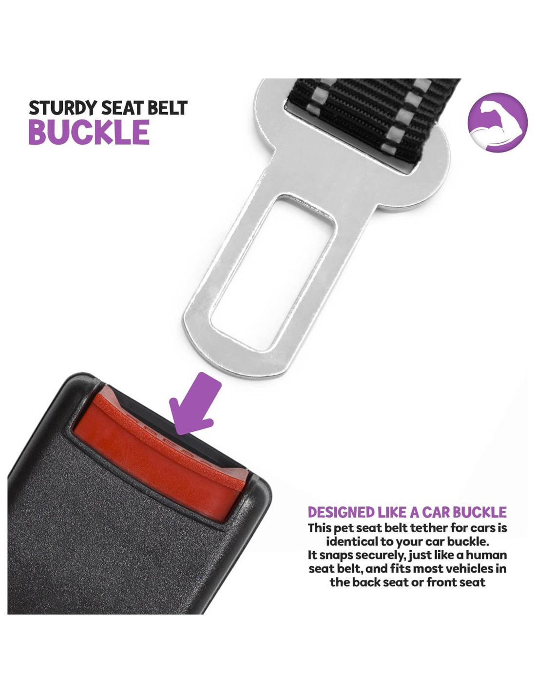 - HEBILLA DE CINTURÓN DE SEGURIDAD RESISTENTE: Diseñada como una hebilla de auto, este cinturón de seguridad para mascotas es idéntico a la hebilla de tu auto. Se asegura de manera segura, al igual que un cinturón de seguridad humano, y se adapta a la mayoría de los vehículos en el asiento trasero o delantero.