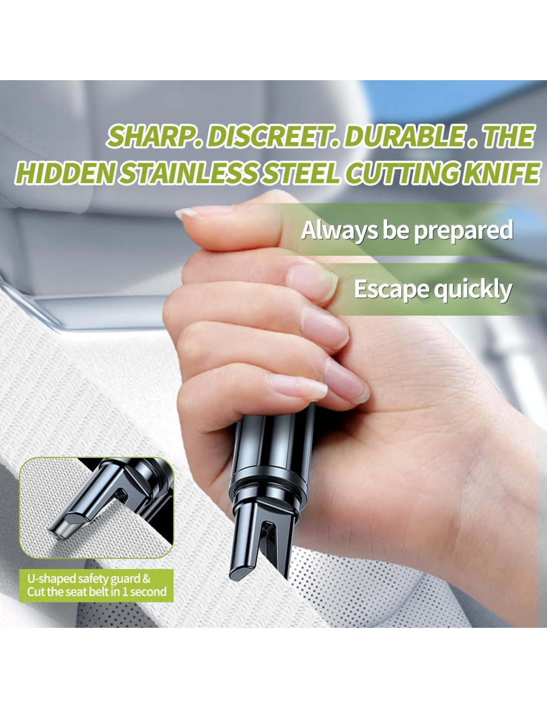- Cortador de Cinturón de Seguridad Afilado La hoja de acero inoxidable premium corta sin esfuerzo a través de cinturones atascados. Usa el cortador en diagonal a través de la correa para una liberación limpia y rápida. Construido para durabilidad y uso repetido, esta herramienta asegura seguridad incluso en momentos críticos.