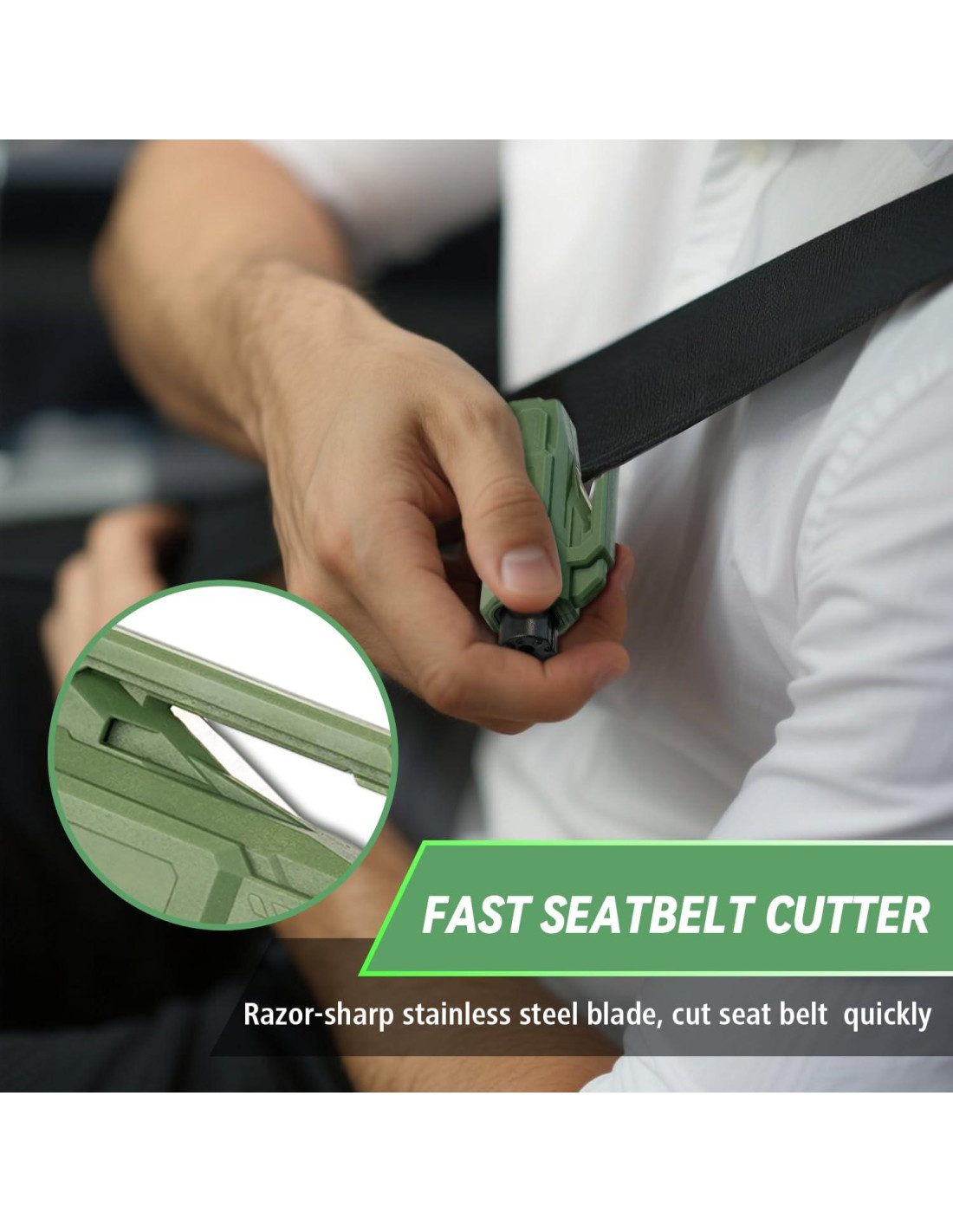 - Herramienta de salvamento dual: Punta de tungsteno de acero con resorte (dureza HRC>60) penetra el vidrio instantáneamente. Cortador de cinturón de seguridad ultra afilado corta cinturones atascados en 1s