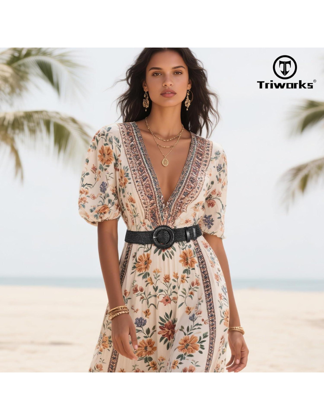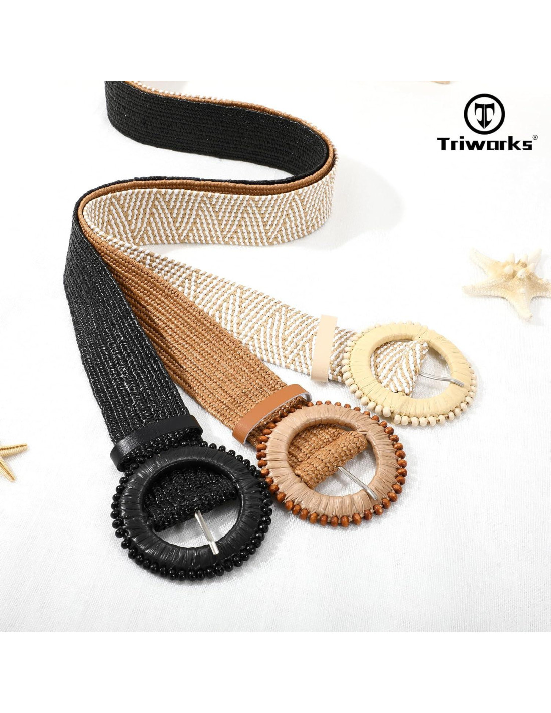 - Listo para Viajar y a la Moda: Elaborado con tela tejida natural reforzada para resistir el estiramiento, con hebillas redondas adornadas con cuentas para un look a la moda. Los tres cinturones de paja anchos se pliegan de manera compacta, lo que los hace ideales para accesorios sobre la marcha.