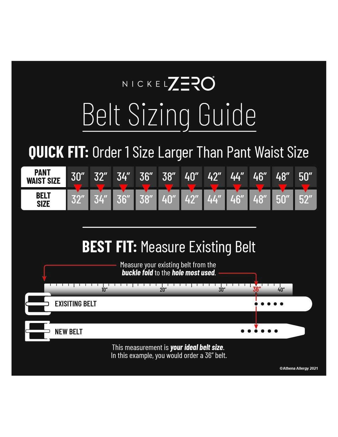 - CERO NÍQUEL, CERO ERUPCIÓN ALÉRGICA AL NÍQUEL - Este cinturón de cuero versátil viene garantizado para nunca dar positivo por níquel. Elimina la incertidumbre al comprar cinturones hipoalergénicos y elige Nickel Zero.
