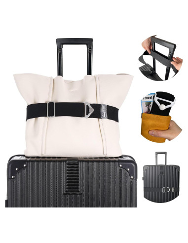 - Cinturón de Viaje Eficiente: Las innovadoras correas de equipaje 2 en 1 aseguran un ajuste seguro de tu bolsa de mano sobre el mango de la maleta sin tambalear. Simplifica tus viajes con nuestro cinturón de equipaje fácil de usar