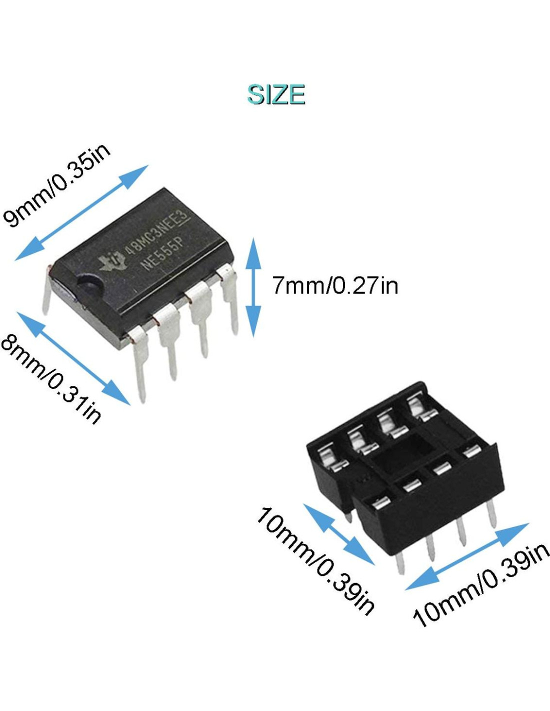 - Parámetros: Paso: 2.54mm / 0.1"; Espaciado de Líneas (Aproximadamente): 8mm / 0.315"; Pines: 8; Dimensiones: 9 x 8 x 7mm / 0.35" x 0.3" x 0.27" (L*W*H)