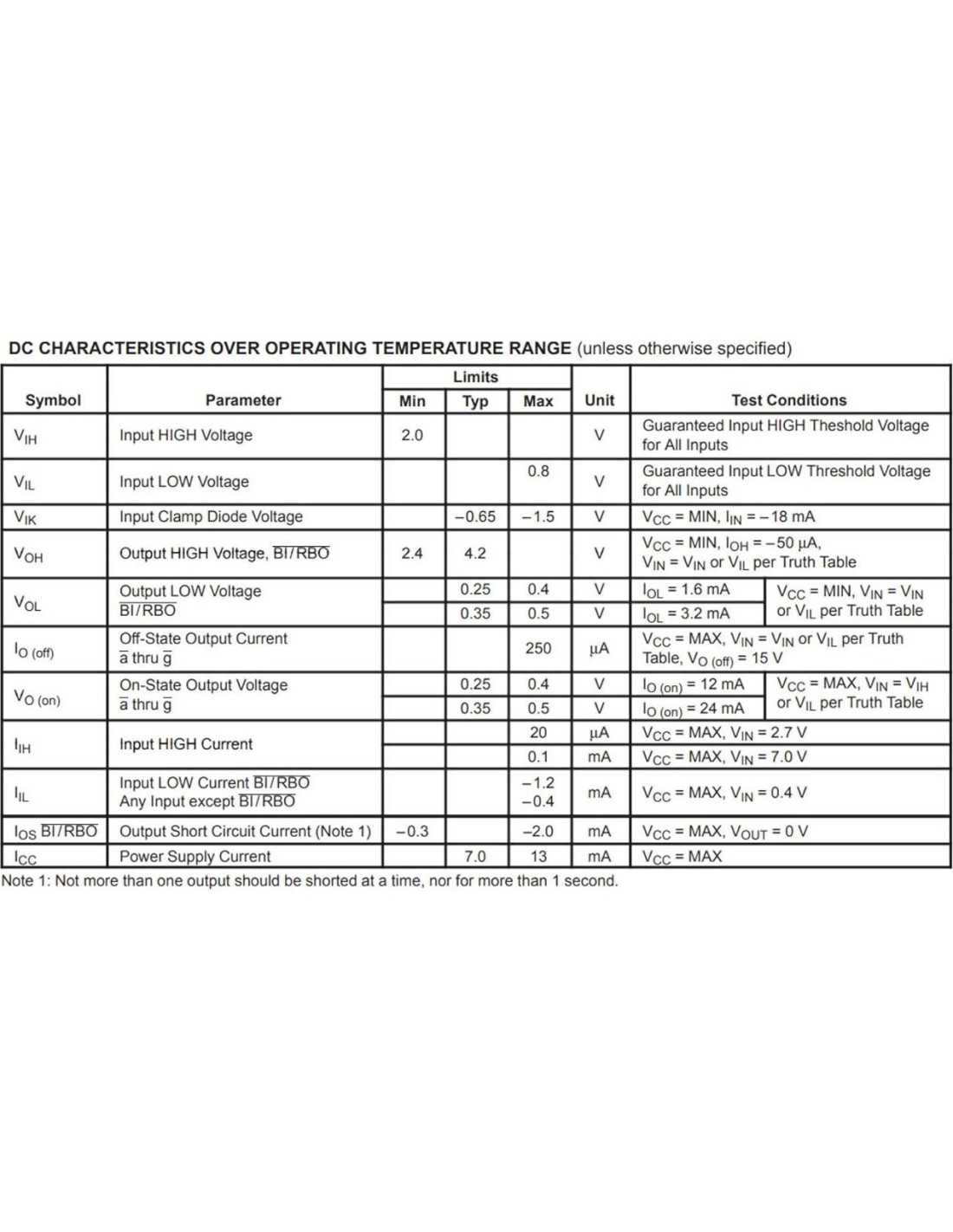 - SN74LS47 incorpora control automático de anulación de cero de borde líder y/o de borde de arrastre (RBI y RBO)
