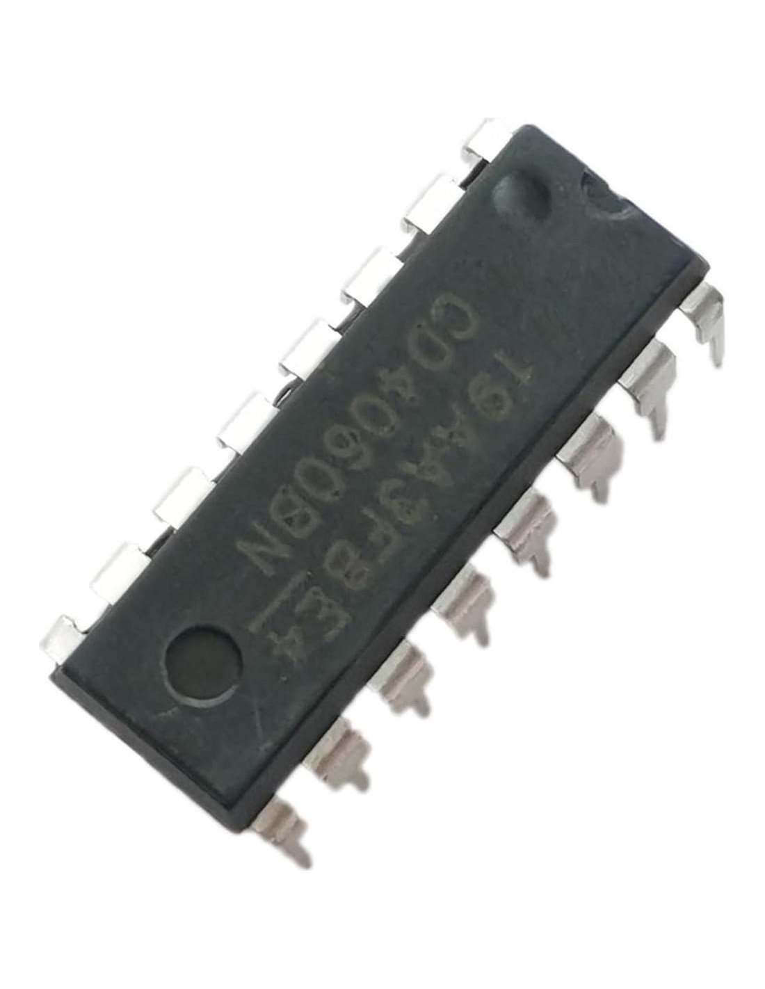 CD4060BE consiste en una sección de oscilador y 14 etapas de contadores binarios ripple carry. La configuración del oscilador permite el diseño de circuitos osciladores RC o de cristal. Se proporciona una entrada de RESET que restablece el contador al estado de todos ceros y desactiva el oscilador. Un nivel alto en la línea de RESET realiza la función de restablecimiento. Todas las etapas del contador son flip-flops maestro-esclavo. El paquete incluye: 10pcs*CD4060BE