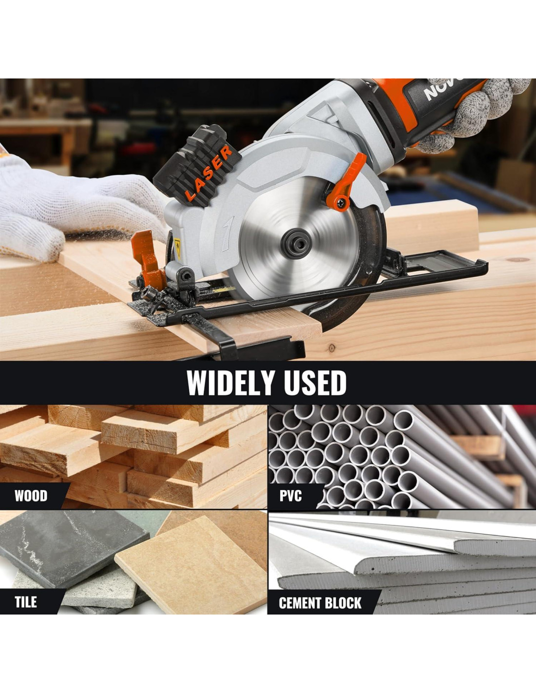 - Motor Potente y Diseño Compacto: Sierra Circular Mini equipada con un robusto motor de 2 Amp/20V que entrega 3400 RPM en vacío, esta sierra circular mini es perfecta para cortar madera, metal blando, azulejos, aluminio y tubos de PVC. Pesando solo 6.9 lbs (3.13 kg), es ligera y compacta. Si necesitas batería extra, puedes encontrarla en nuestra tienda (B0FD98NGP6).