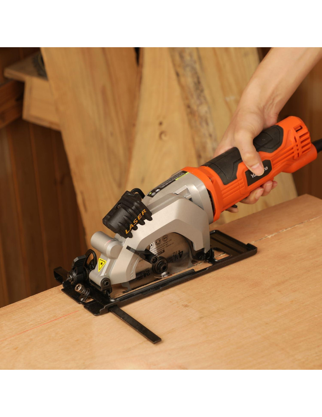 - Sierra circular compacta y práctica: Diseñada para conveniencia con su tamaño compacto y peso ligero, lo que la hace ideal para uso con una mano. Cuenta con empuñaduras suaves ergonómicas para mayor comodidad y visibilidad óptima de la línea de corte durante tareas detalladas