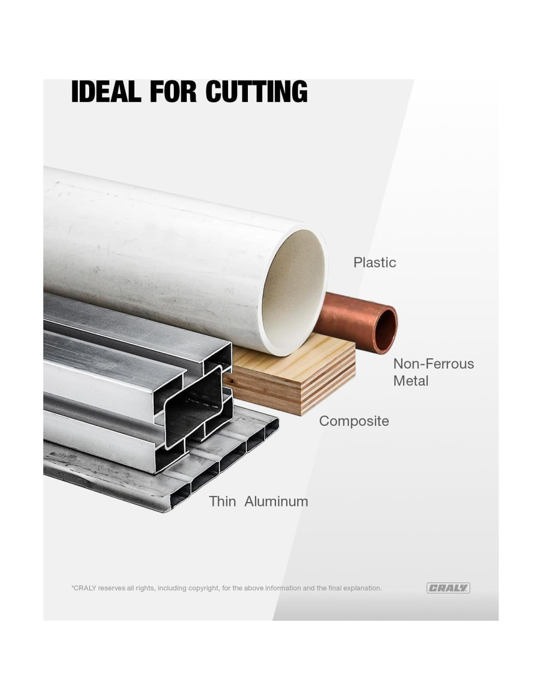 CRALY tiene décadas de experiencia en el diseño y fabricación de accesorios de herramientas eléctricas de alta calidad. CRALY tiene como objetivo combinar materiales premium y tecnologías de fabricación avanzadas para ofrecer las herramientas más resistentes y productivas para su trabajo diario. Obtenga su CRALY hoy y pruébelo. No se arrepentirá. Especializado en Corte de Aluminio/Metales No Ferrosos Superficie Trabajable y Menos Desgaste Hecho para Corte Intensivo y Eficiente