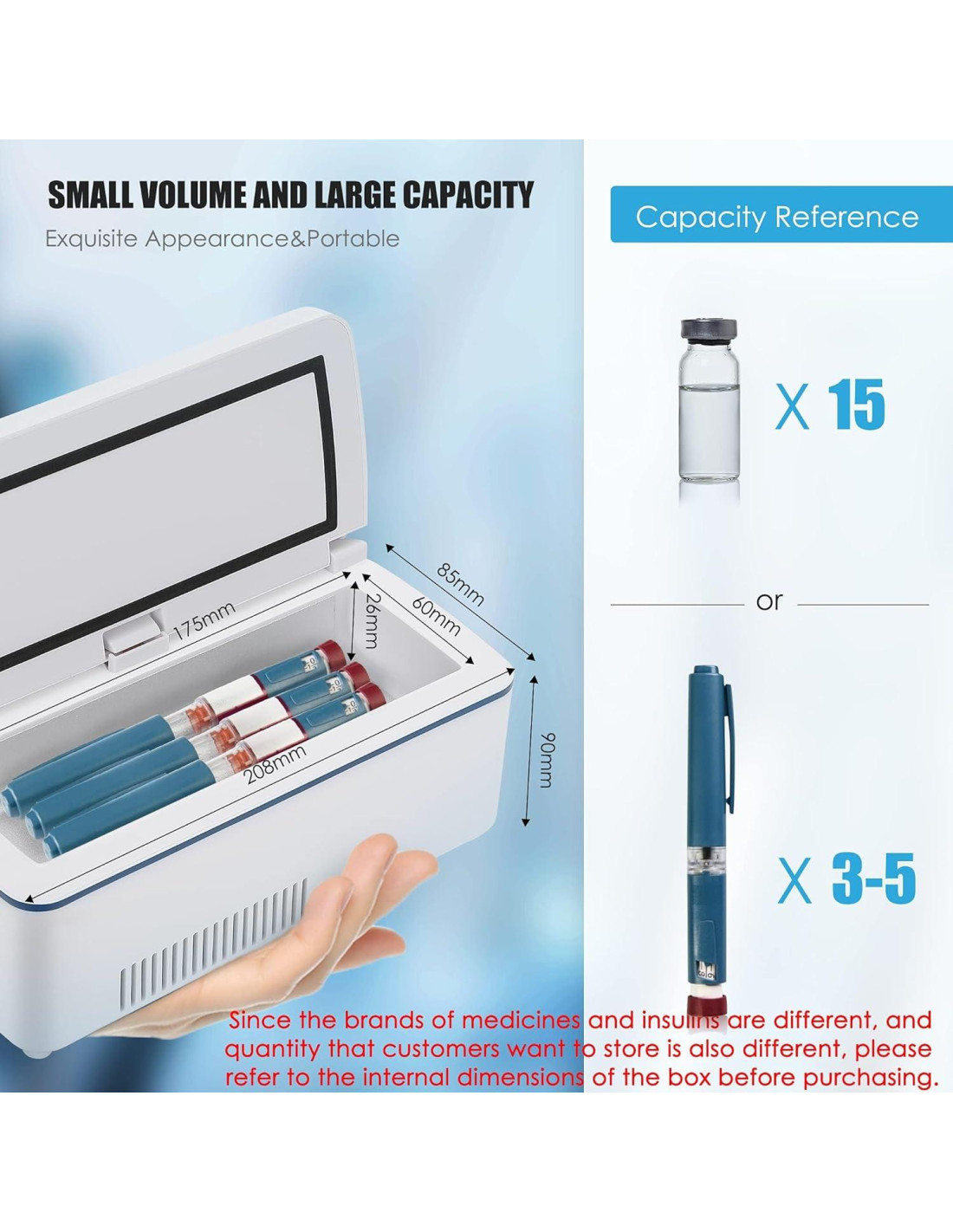 - [Gran Capacidad de Refrigeración]- Nuestra caja de enfriamiento de insulina está diseñada con un GRAN ESPACIO DE REFRIGERACIÓN de 175*60*26mm, aplicable para restaurar casi 3 meses de medicamentos, alrededor de 3-5 bolígrafos de inyección/9 botellas de insulina.