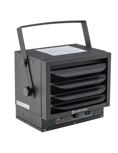 Calentador de Techo Potente Ideal para uso en un garaje o taller, este potente calentador de montaje en techo Comfort Zone proporciona mucha calidez sin ocupar espacio valioso en el suelo. El potente calentador comercial es ideal para crear un ambiente cómodo para todo, desde trabajos y proyectos de bricolaje hasta simplemente un área de reunión fresca para amigos y familiares. Construcción de Acero Robusto Diseñado para un uso prolongado en entornos difíciles, este calentador forzado por ventilador está fabricado con un cuerpo de acero de alta resistencia. Esto le permite resistir caídas y picos de temperatura repentinos que puede encontrar en áreas mal aisladas. Calefacción Dirigida Las rejillas y un ángulo de montaje variable le permiten dirigir el flujo de aire del calentador comercial de 240 voltios hacia un área con corrientes de aire o hacia su estación de trabajo habitual, asegurando que el calor vaya donde más se necesita. Controles Manuales Simples El calentador cuenta con un doble botón en la parte frontal que le permite ajustar rápida y fácilmente el termostato o encender y apagar la unidad. Los controles simples facilitan obtener la salida de calor justo al nivel adecuado para su espacio. Características de Seguridad Inteligentes Un sensor incorporado apaga inmediatamente el calentador de montaje en techo forzado por ventilador si alcanza una temperatura insegura para prevenir el sobrecalentamiento. La unidad también cuenta con una luz de encendido que indica claramente cuando está en uso, ayudándole a asegurarse de que esté apagada de manera segura antes de salir de la habitación.