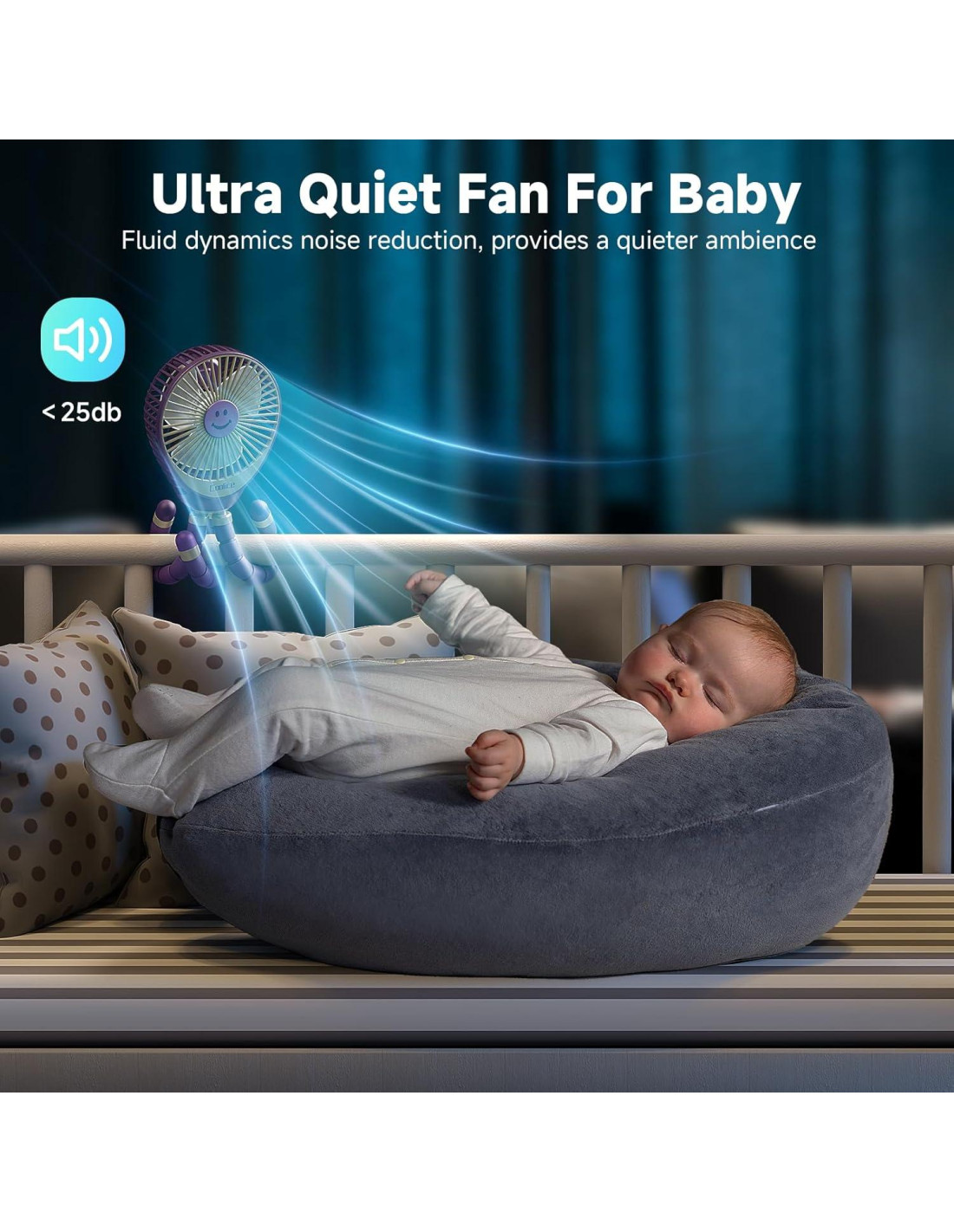 - Forma de Aguacate y Rejilla de Seguridad de 5.5MM Ventilador a base de agua que reduce el ruido para que el bebé duerma mejor. Ventilador para cochecito de bebé con rejilla de seguridad de 5.5MM que previene que el bebé accidentalmente meta los dedos dentro del ventilador mientras juega. Este ventilador para asiento de coche tiene un husillo flexible que rota 360 grados para enfriar sin puntos muertos. Logo de cara sonriente y forma de aguacate para mayor diversión para este ventilador recargable para cochecito. Colores ricos y variados, siempre hay uno que te gusta.