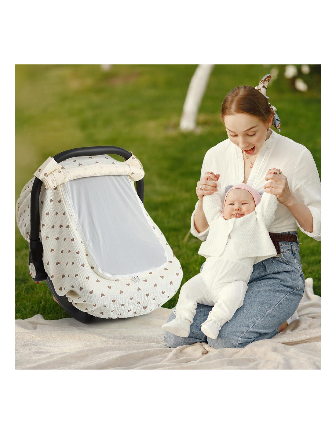 - Transpirable y ligero - La cubierta de asiento de coche para bebés está hecha de material de algodón 100% de alta calidad, suave y transpirable, el bebé no se sobrecalentará en el asiento de coche cuando el clima esté caliente. La tela de muselina es particularmente ligera y delgada, lo que no causa mucho peso al cargar a tu bebé.