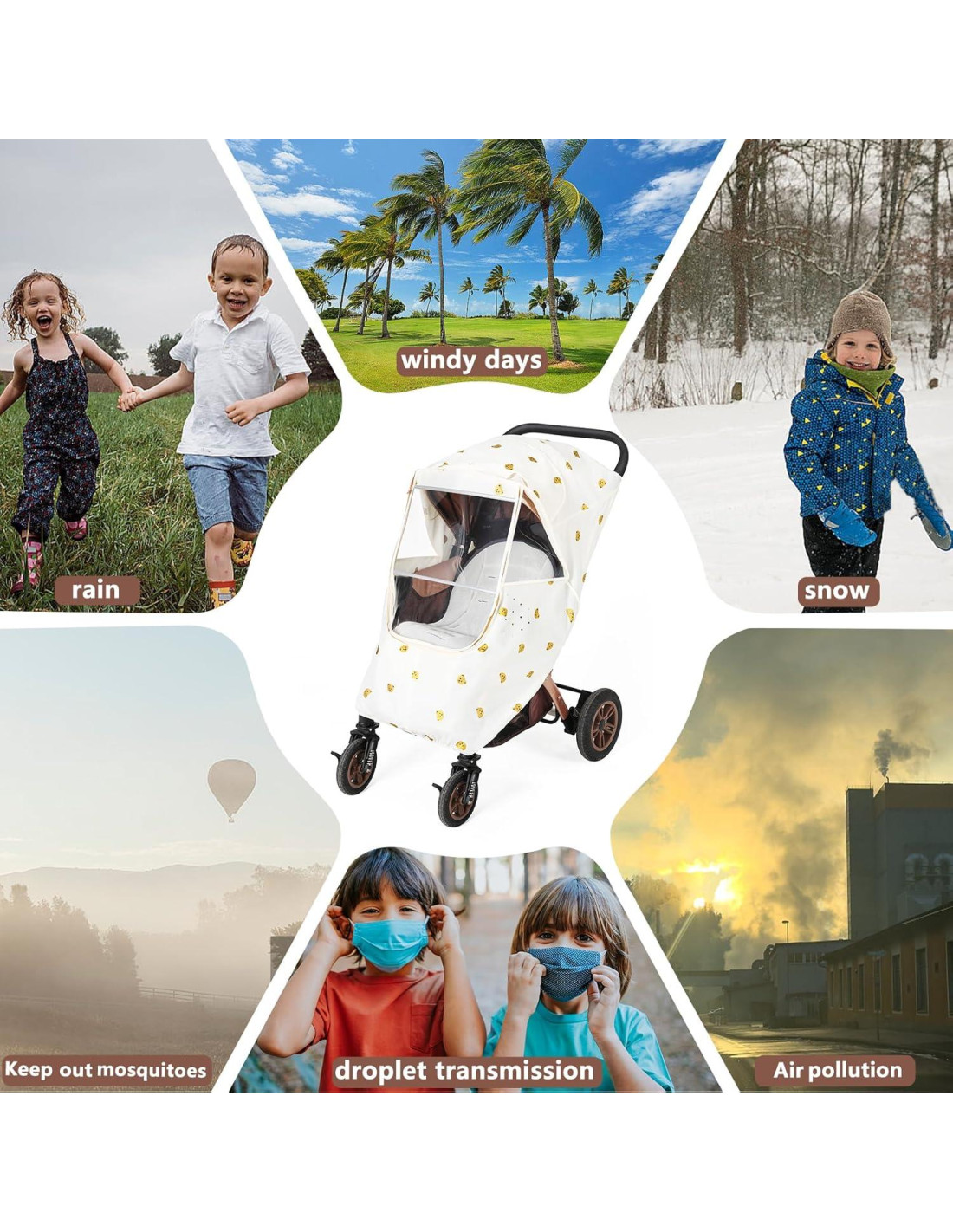 - [Ecológico y cómodo] Esta cubierta de lluvia para cochecito está hecha de materiales ecológicos y amigables con la piel, asegurando la comodidad y seguridad de tu bebé. También cuenta con un diseño ventilado que promueve un flujo de aire adecuado, previniendo la sensación de agobio y manteniendo a tu bebé fresco y cómodo.