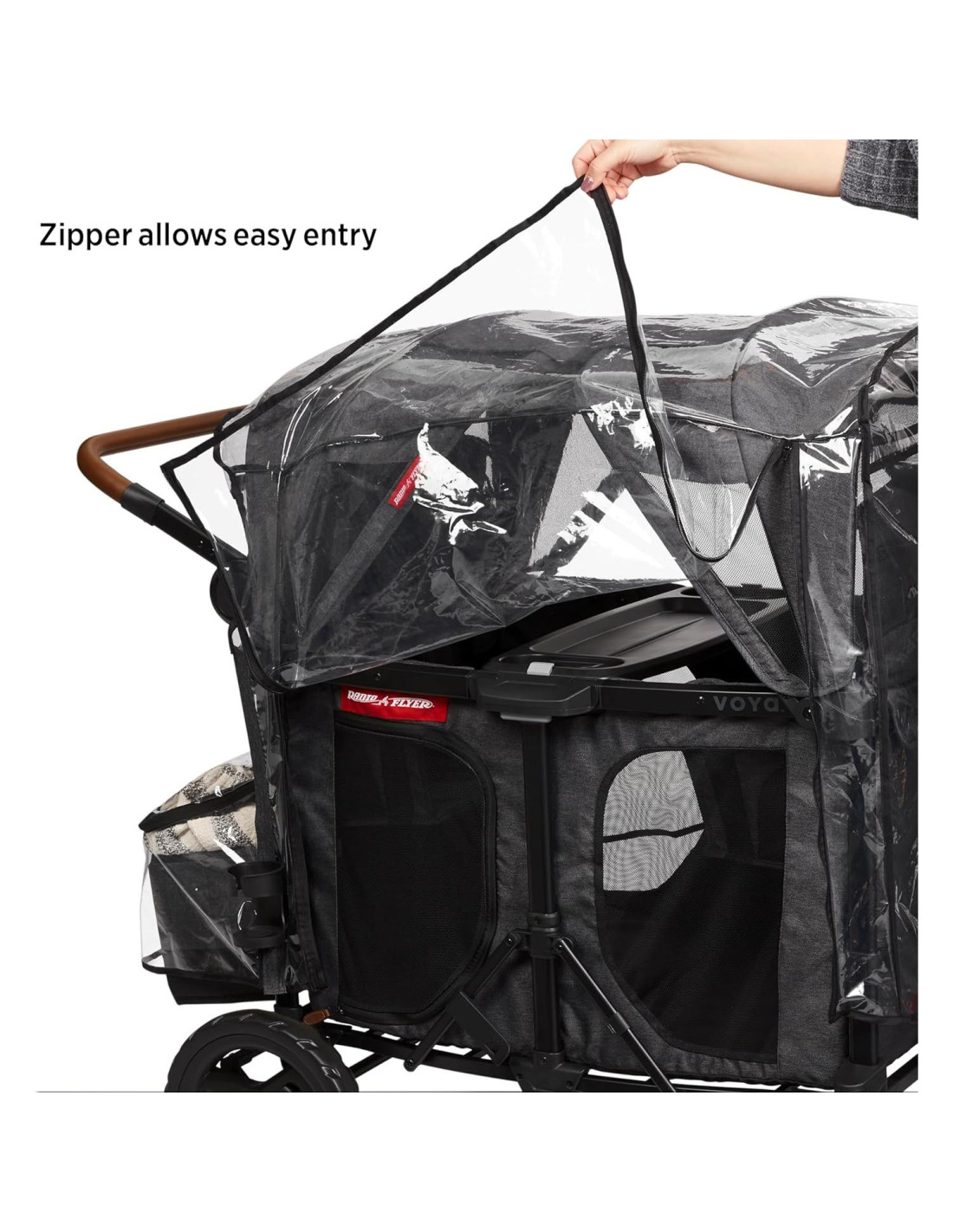 Mantén a tus pequeños secos y cómodos con la Cubierta de Lluvia Voya con Bolsa, una adición imprescindible a tus esenciales para bebés, esenciales de verano para bebés, esenciales de viaje para bebés y colección de esenciales de viaje para bebés. Esta cubierta de lluvia de cobertura total está diseñada para proteger tu carro de bebé para 2 niños o carro doble de la lluvia y el viento, haciendo que cada aventura sea más suave, ya sea llueva o brille. Ya sea que estés paseando por el parque, dirigiéndote a la playa con esenciales de playa para bebés y esenciales de playa para niños, o preparándote para viajes de verano, esta cubierta de lluvia ofrece protección confiable. Es perfecta para familias que siempre están en movimiento y empacando para esenciales de campamento de verano, esenciales de camping en auto, o incluso vuelos con esenciales de viaje en avión para bebés. El conveniente panel lateral con cremallera facilita la entrada y salida de los niños sin quitar la cubierta. Cuando la lluvia se despeje, ábrelo para mayor flujo de aire. La bolsa de malla incluida asegura un secado rápido y un almacenamiento fácil, haciéndola ideal para padres organizados que utilizan un organizador de carro o un organizador de biberones. Compatible con carros de bebé, esta cubierta de lluvia se integra perfectamente con tus productos de bebé de confianza. También apoya a los padres que ensamblan artículos de registro de bebé, imprescindibles de registro de bebé, planificando esenciales para nuevas mamás, o creando una lista de imprescindibles de Disney para el parque. Aunque no está destinada para accesorios de bicicleta, accesorios de mini bicicleta, soporte para teléfono de bicicleta, soporte para taza de bicicleta, soporte para botella de agua de bicicleta, o soporte para botella de agua para uso en bicicleta, esta cubierta de lluvia combina perfectamente con otros equipos de viaje como tu soporte para taza, soporte para teléfono de taza, o incluso accesorios para caminadores. Para preguntas adicionales, soporte o inquietudes, por favor contacta a nuestro equipo de servicio al cliente en https://www.radioflyer.com/customer-service/ o 1 (800) 621-7613.