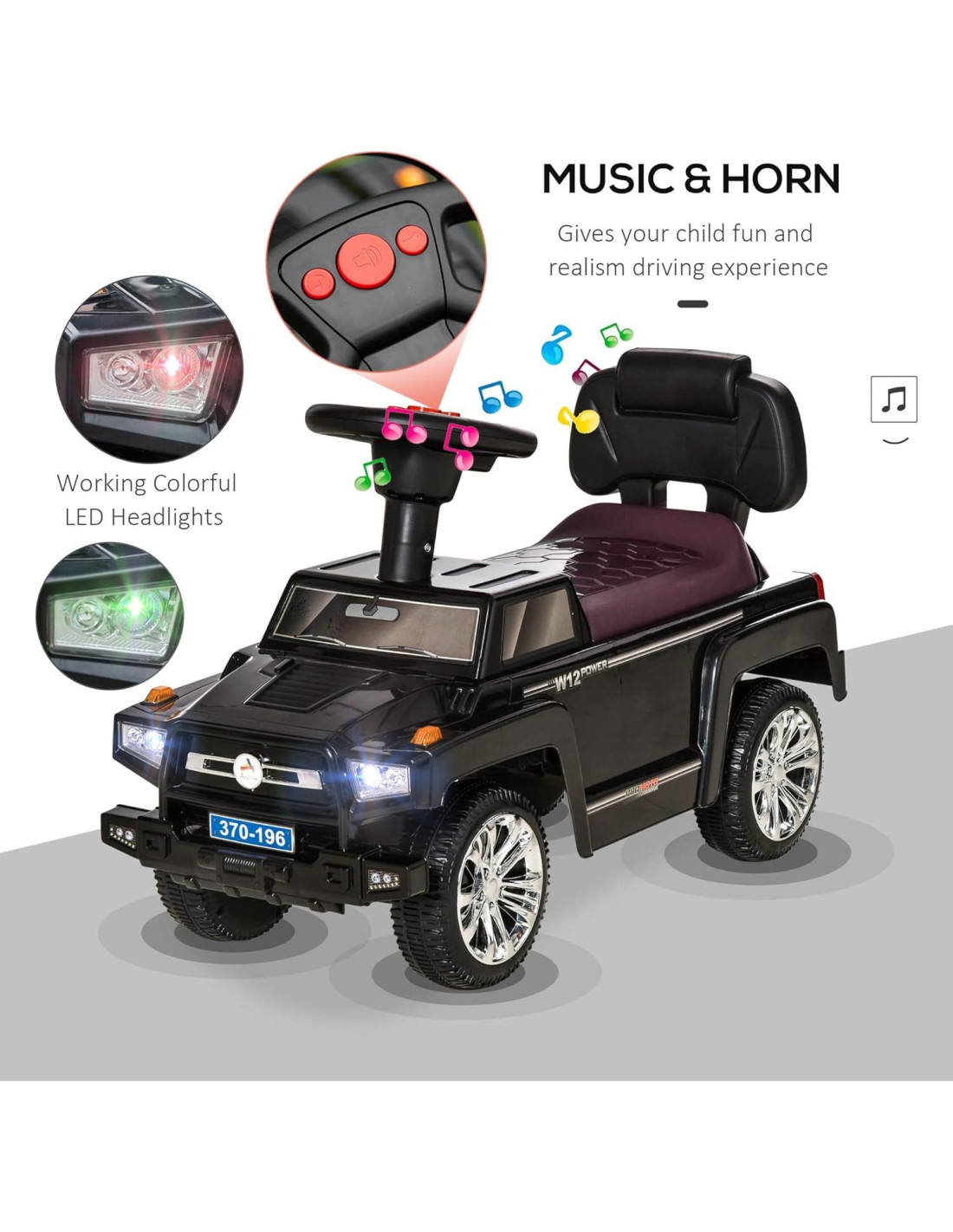 Este coche de empuje de Aosom es un regalo perfecto para niños de 18 a 36 meses, con su diseño de pie a piso que les da la confianza para aprender a caminar por su cuenta. Las características de la bocina y la música ayudan a crear una atmósfera divertida. El compartimento de almacenamiento oculto debajo del asiento sin duda se convertirá en su lugar secreto para guardar bocadillos y juguetes. Puedes disfrutar del tiempo en familia empujando este juguete de montar. Un diseño sin baterías y un volante fácil de controlar hacen de este coche de montar una elección fácil para los padres.