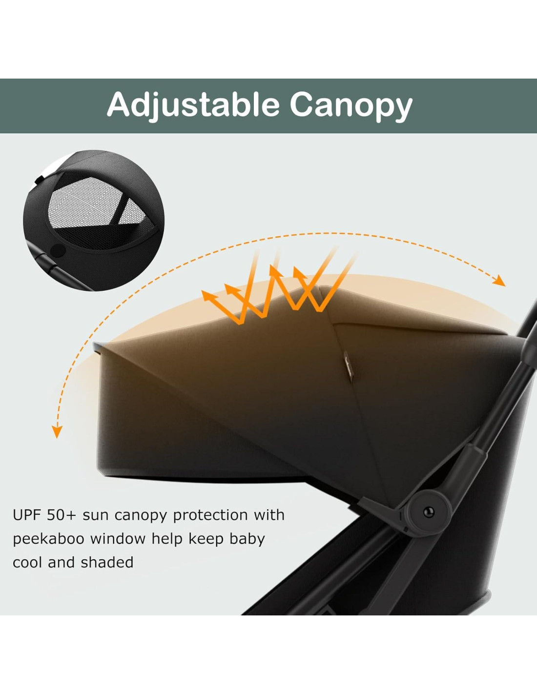 - Diseño cómodo: la parte trasera del carrito se puede ajustar fácilmente a cualquier ángulo de 100-145 , adecuado para que el bebé se acueste o duerma. Además, el reposapiés y la capota se pueden ajustar según diferentes necesidades, lo que permite que el bebé se sumerja en la comodidad.