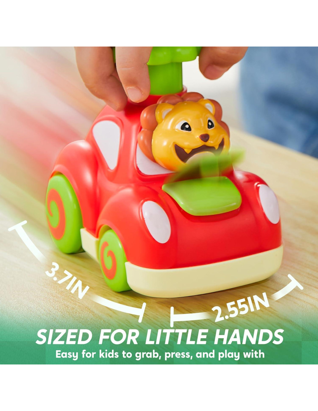 - Amigos Animales Encantadores: Introduce a tu niño pequeño a un mundo emocionante con un conjunto de coches de juguete temáticos de elefante, mono, jirafa y león, diseñado para encender su imaginación