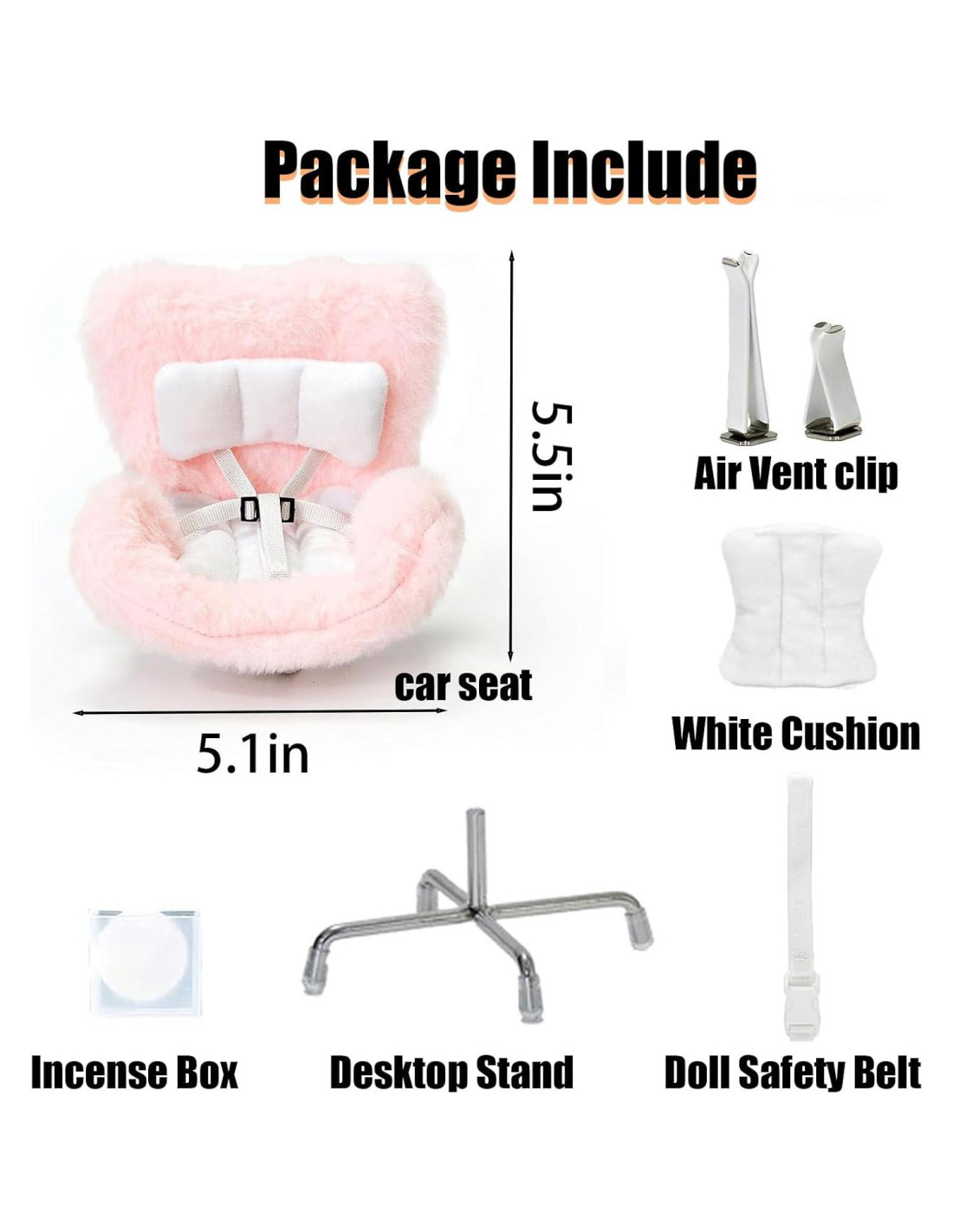 - Asiento de Escritorio: Las patas del asiento incluidas se adjuntan fácilmente a la parte posterior del asiento, puedes convertir esta bonita decoración de coche en un encantador asiento de escritorio para decorar tu hogar u oficina, manteniendo la muñeca bonita contigo en todo momento