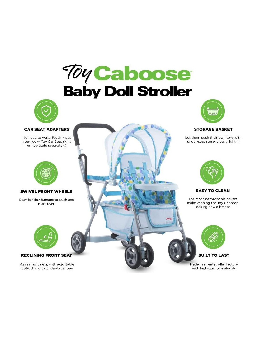 - CONSTRUIDO PARA LA FAMILIA, DISEÑADO PARA LA VIDA - Joovy cree que padres felices y saludables producen niños felices y saludables y el Carrito de Muñecas Toy Caboose permite a tus pequeños jugar a ser padres con un carrito que es tan real como el tuyo