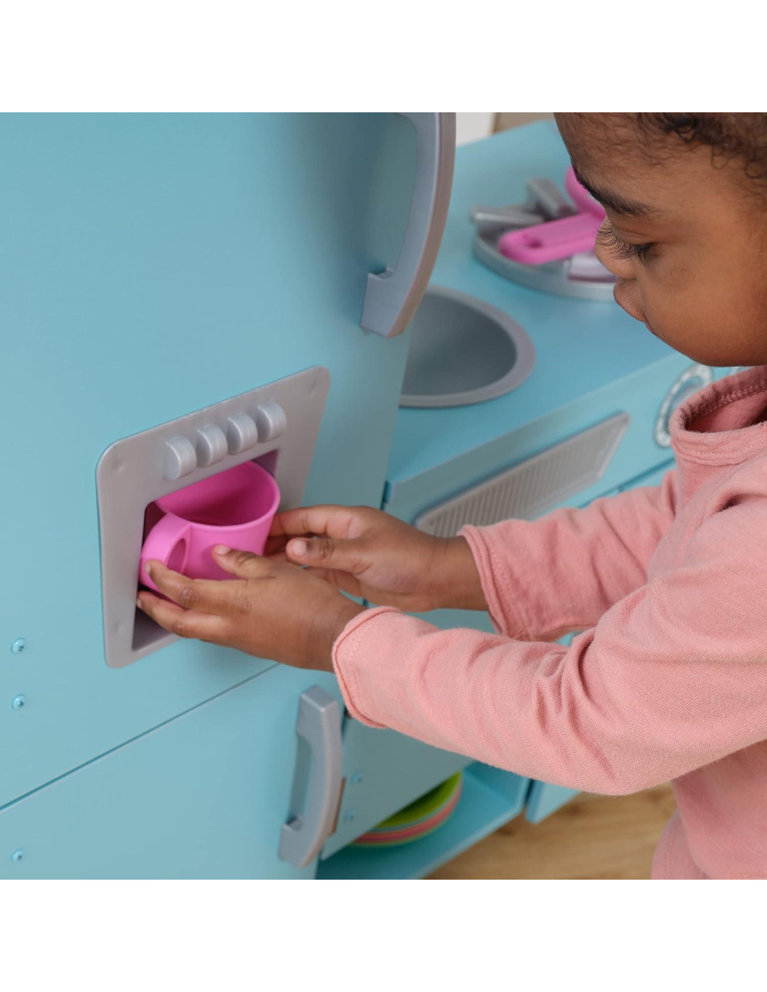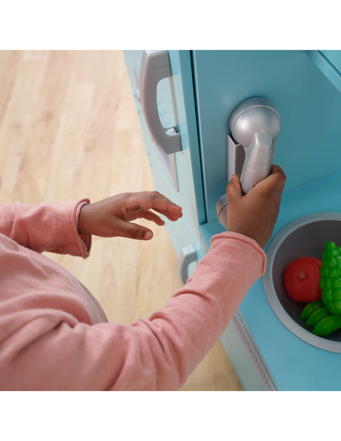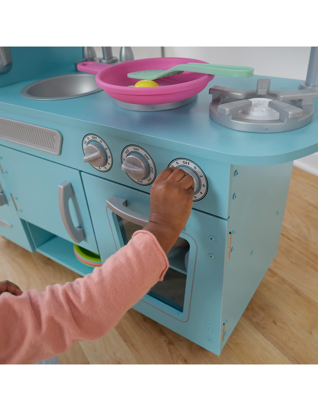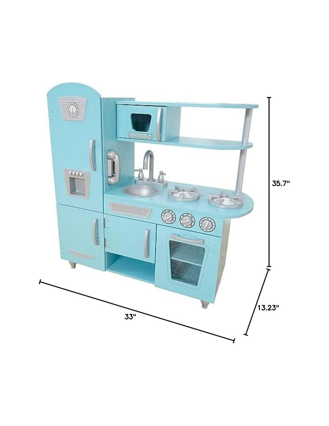 Descripción del Producto ¡Juego moderno con un toque vintage! ¡Los jóvenes chefs seguramente amarán cocinar diversión con la adorable Cocina de Juguete Vintage Azul KidKraft! Esta cocina de estilo retro da la bienvenida con mucho espacio de juego, además de puertas que abren y cierran y perillas que hacen clic y giran para un montón de diversión práctica. Los acentos con apariencia de acero inoxidable complementan el color fresco para una combinación llamativa que será una adición destacada a cualquier sala de juegos o espacio de juego en tu hogar. Los niños tienen muchos accesorios incorporados para mantener sus mentes ocupadas. Un teléfono de clip es imprescindible para hablar de recetas o chismes con tus mejores amigos. Un fabricante de hielo empotrado y un termómetro en la nevera inspiran muchas historias de juego. Lo mejor de todo, el diseño de madera duradero puede soportar las imaginaciones más entusiastas durante años. Del Fabricante ¡Bon Appétit! Nuestra Cocina Vintage en Azul permite a los niños fingir que están cocinando grandes banquetes para toda la familia. Con su atención al detalle y características interactivas, esta adorable cocina sería un gran regalo para cualquiera de los jóvenes chefs en tu vida.