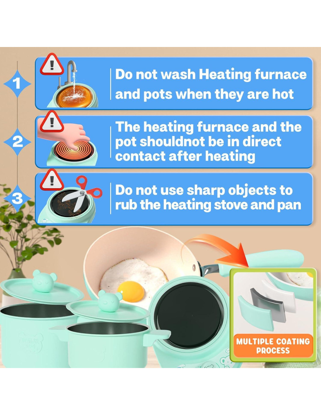 - [Diseñado para Niños] El tamaño mini está especialmente diseñado para las manos pequeñas de los niños. Cada accesorio en este conjunto está hecho según los estándares de juguetes de América y certificado para pruebas de seguridad. Permita que los padres elijan con confianza y que los niños se diviertan usando nuestro conjunto de cocina mini para hacer comida mini real. Después de usar, preste atención a la limpieza y desinfección, mantenga la estufa seca y ordenada, para facilitar el próximo uso.