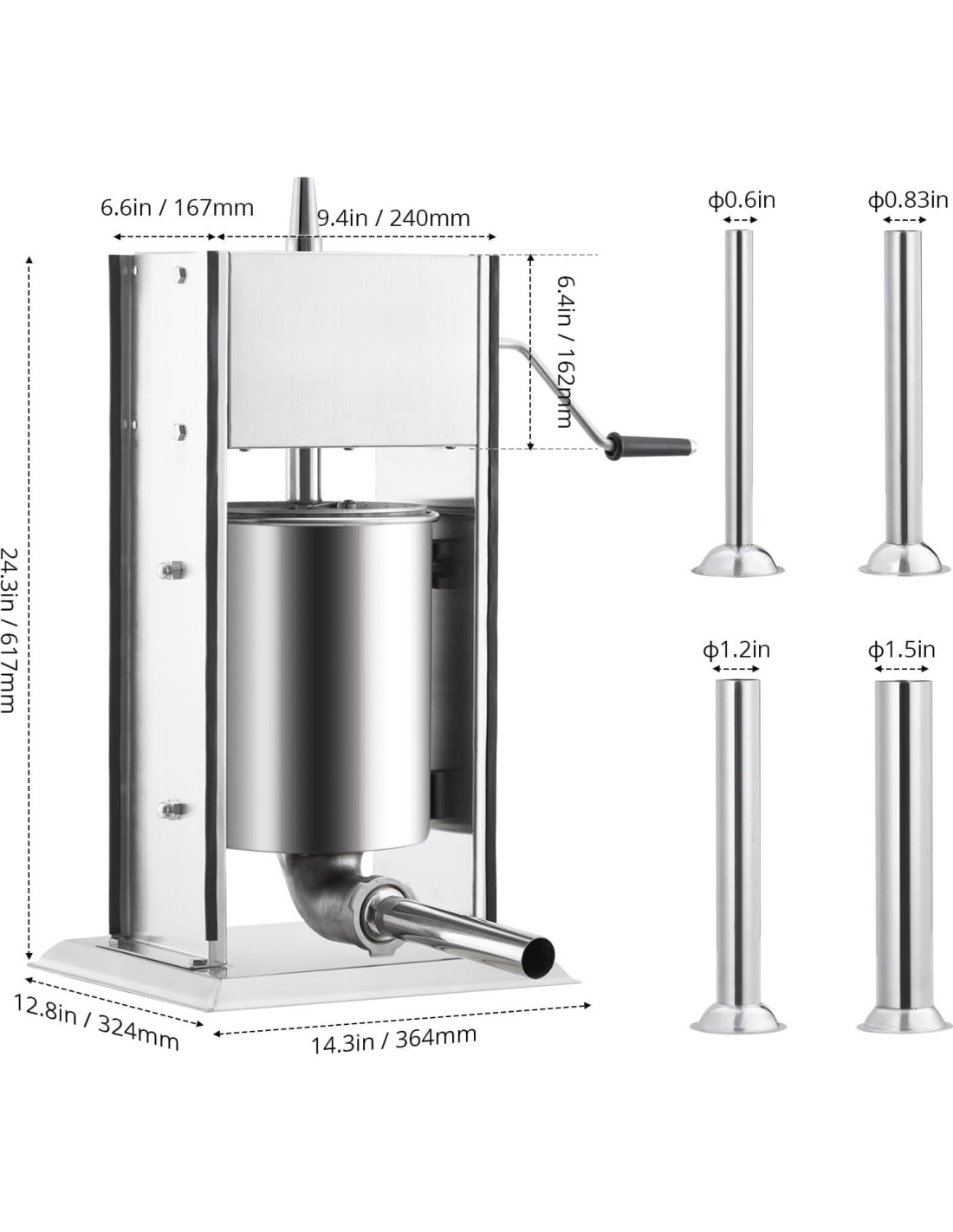 Cuerpo robusto de acero inoxidable completo con características duraderas, anticorrosivas y resistentes al desgaste. Todas las partes en contacto directo con alimentos cumplen con los estándares de higiene alimentaria SGS para garantizar una durabilidad prolongada. No es necesario ensamblar, se puede usar después de desarmar el paquete. Adjunta tu funda al tubo de relleno y gira para llenar. ¡Enciende la parrilla! Deleita a familiares y amigos con tus deliciosas salchichas caseras.