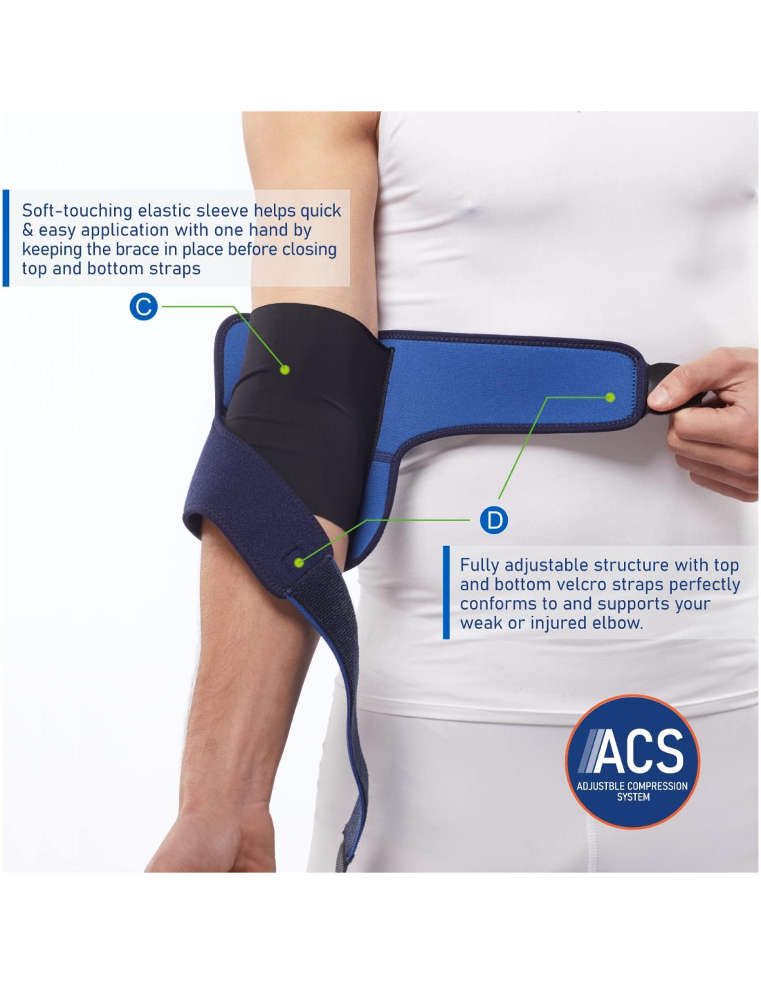 - [ALIVIO INSTANTÁNEO DEL DOLOR Y RECUPERACIÓN RÁPIDA] La Faja Ajustable para Codo Comforband se adapta perfectamente y apoya tu articulación del codo débil o lesionada. Diseñada médicamente para ayudar a aliviar el dolor asociado con la epicondilitis (codo de tenista/codo de golfista) y otros esguinces y lesiones por esfuerzo repetitivo. La faja también puede ser utilizada en la recuperación y puede ayudar con la rehabilitación tras cirugía, trauma o lesión.