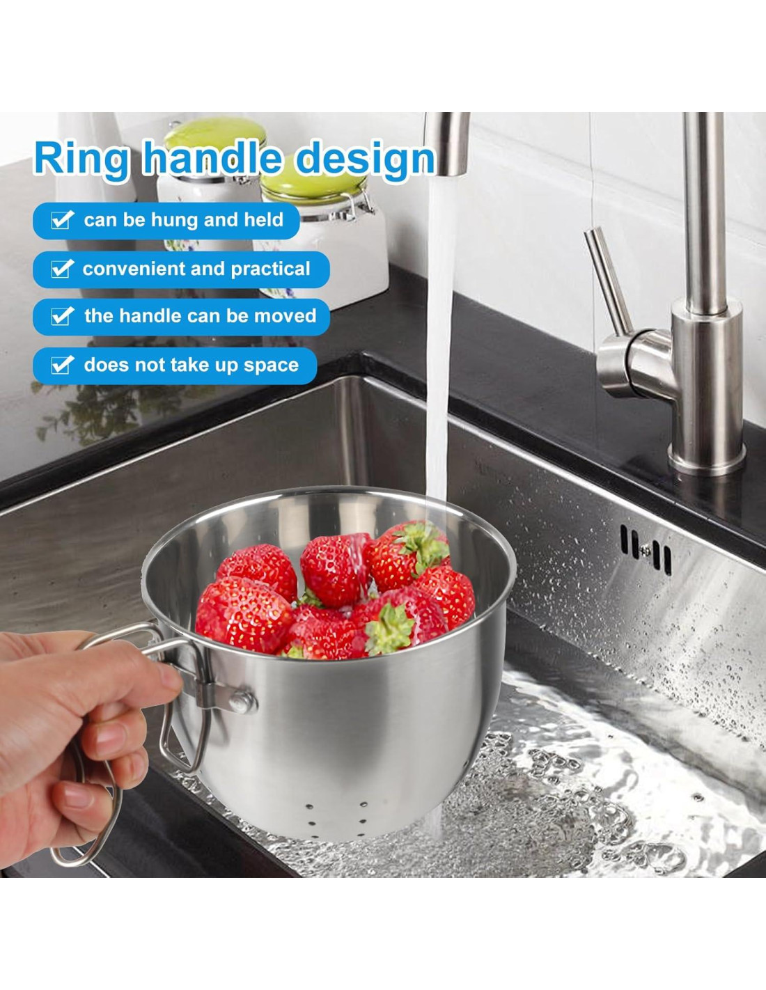- Herramienta Práctica: La canasta coladora de fregadero de acero inoxidable es perfecta para enjuagar frutas y verduras en la cocina, escurrir pasta, papas, brócoli, verduras de hoja, alimentos enlatados, etc. Perfecta para filtrar, lavar y enjuagar. También se puede usar para guardar utensilios de cocina como utensilios de mesa, esponjas, etc.