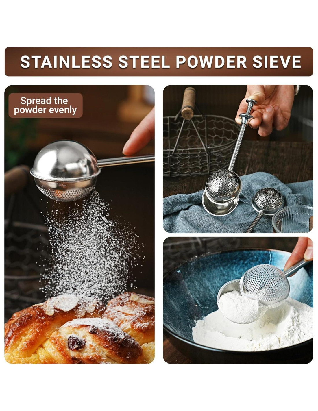 - Varita para Espolvorear para Panaderos: Ideal para espolvorear cacao en polvo o azúcar en polvo en postres, y para espolvorear harina en la encimera para hornear, sin desperdiciar, obteniendo justo lo necesario