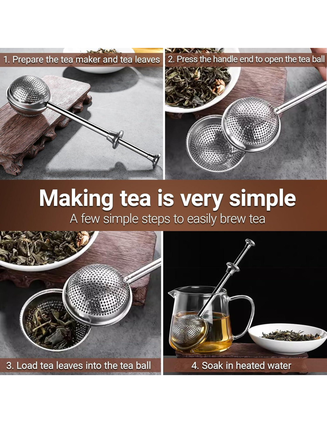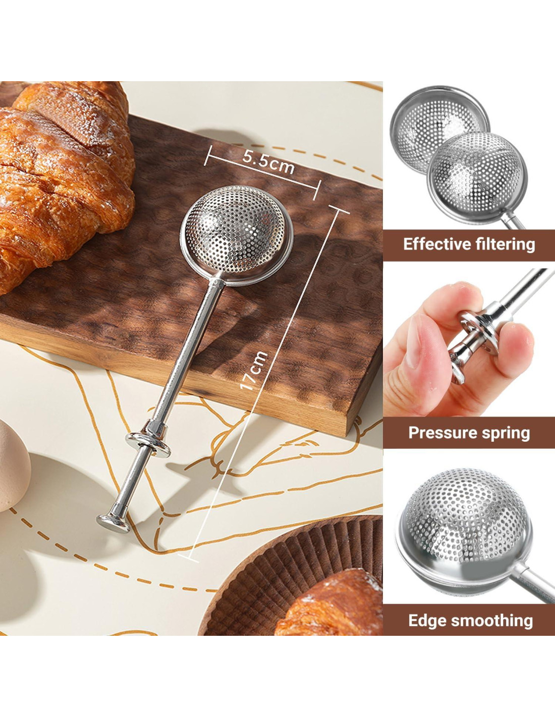 - Diseño de Acero 304 de Doble Función | Tamiz Ultra Fino para Té y Hornear Colador de té de acero inoxidable con filtro de orificio completo de 0.5mm elimina los residuos de té, mientras que el tamiz de media cucharada de 15ml asegura una medición precisa de especias, harina o polvo de matcha. Compatible con tés de hojas sueltas (por ejemplo, Pu-erh, oolong) e ingredientes para hornear (por ejemplo, cacao, azúcar)