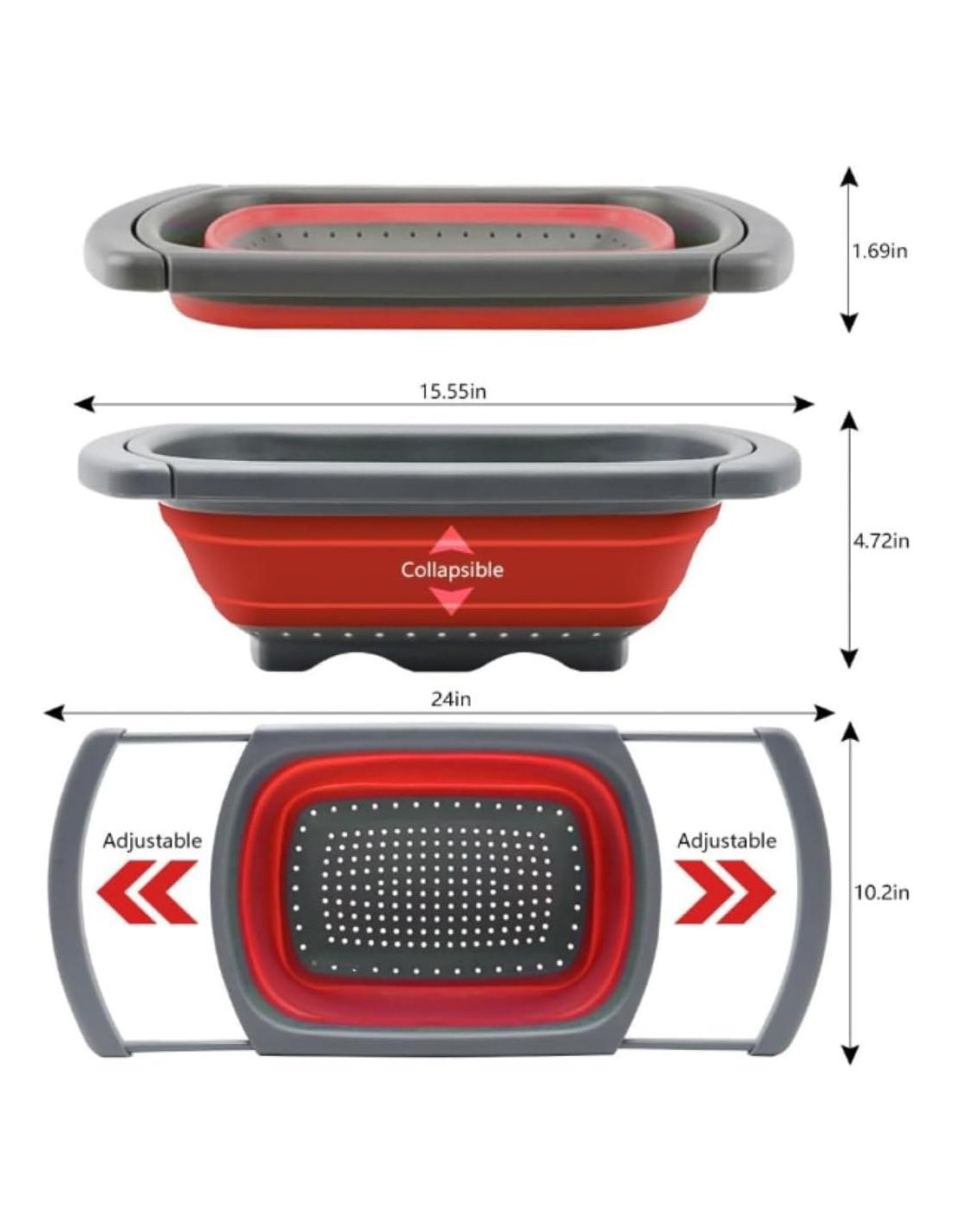 - Diseño colapsable de un empuje al presionar hacia abajo ambos mangos al mismo tiempo, el colador grande de 6 cuartos tiene mangos telescópicos para un fácil colado sobre el fregadero. Diseño resistente y calidad premium - Puedes estar seguro de que estás obteniendo solo lo mejor con el colador colapsable de silicona. Ligero y plegable, lo que lo hace ideal para acampar, viajes por carretera y cocina al aire libre.