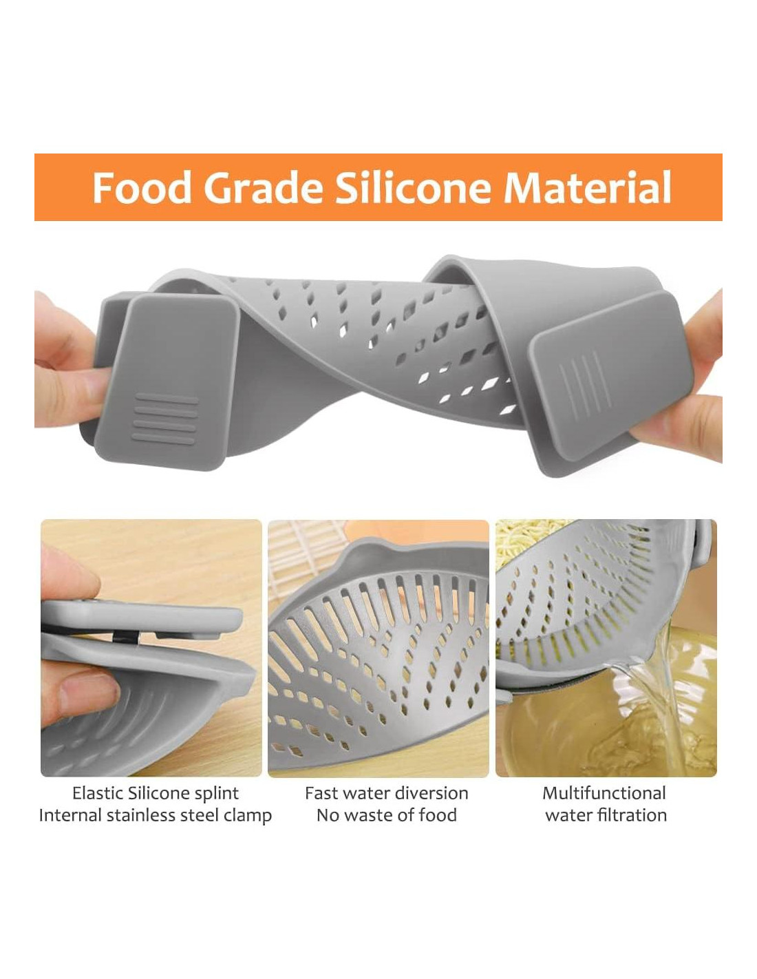 - [ DURADERO Y RESISTENTE AL CALOR ] El colador de silicona clip está hecho de silicona segura y no tóxica, libre de BPA, apto para lavavajillas. El colador de alimentos de silicona puede soportar temperaturas de 230, y no se romperá, quemará ni derretirá con el tiempo