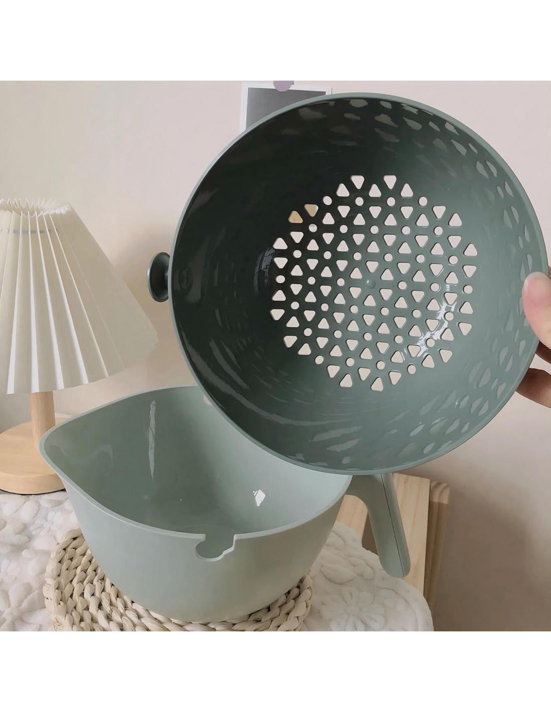 - [Diseño Desmontable y Ahorra Espacio] El colador y tazón desmontables se pueden usar por separado como una cesta de frutas o caja de almacenamiento, maximizando el espacio en la cocina y proporcionando funcionalidad adicional.