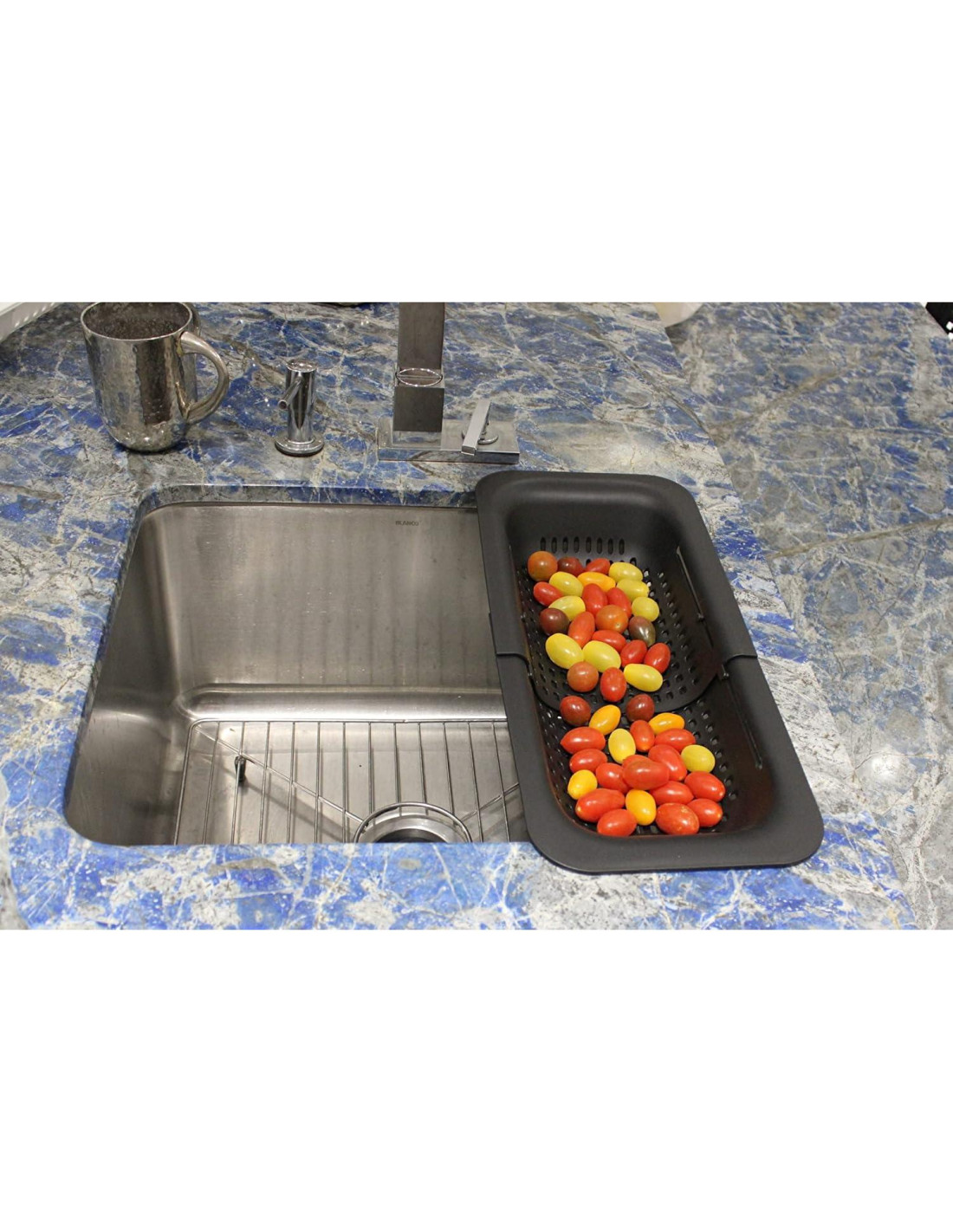 - Ajuste Ajustable para la Mayoría de los Fregaderos - Se expande de 36.2 cm a 49.5 cm para adaptarse a fregaderos estándar; ideal para enjuagar, colar y escurrir en un solo paso fácil.