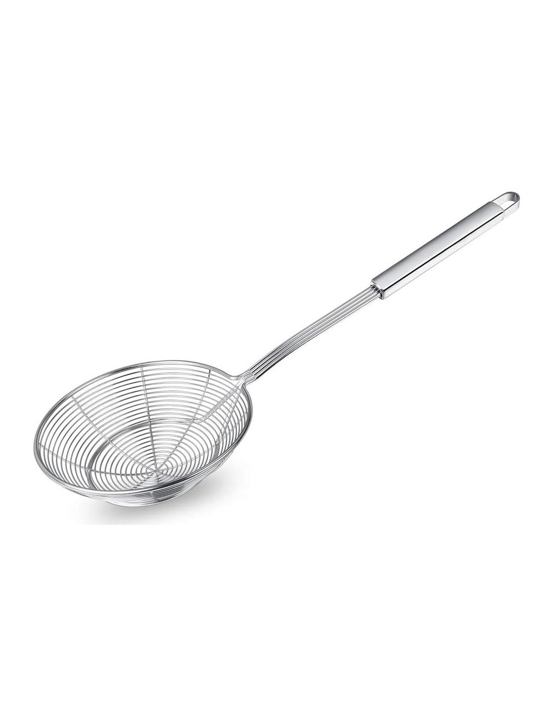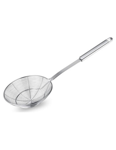 - Cuchara colador con alambre: el tazón de red araña te ayuda a sacar alimentos del aceite caliente o agua de manera segura, atrapa los alimentos de forma segura mientras libera aceite y otros residuos. Perfecto para freír alimentos, como papas fritas, muslos de pollo, y recoger fideos, spaetzli, pasta, espagueti y más.